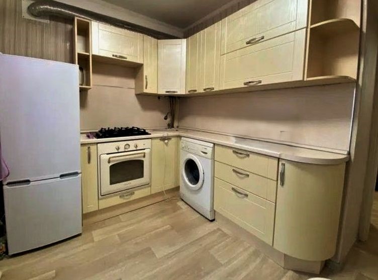 В квартире есть вся бытовая техника, сантехника в ванной комнате, необходимая мебель есть также на кухня для комфортного проживания. В жилых комнатах есть двуспальная кровать и диван. Ванная комната совмещенная.