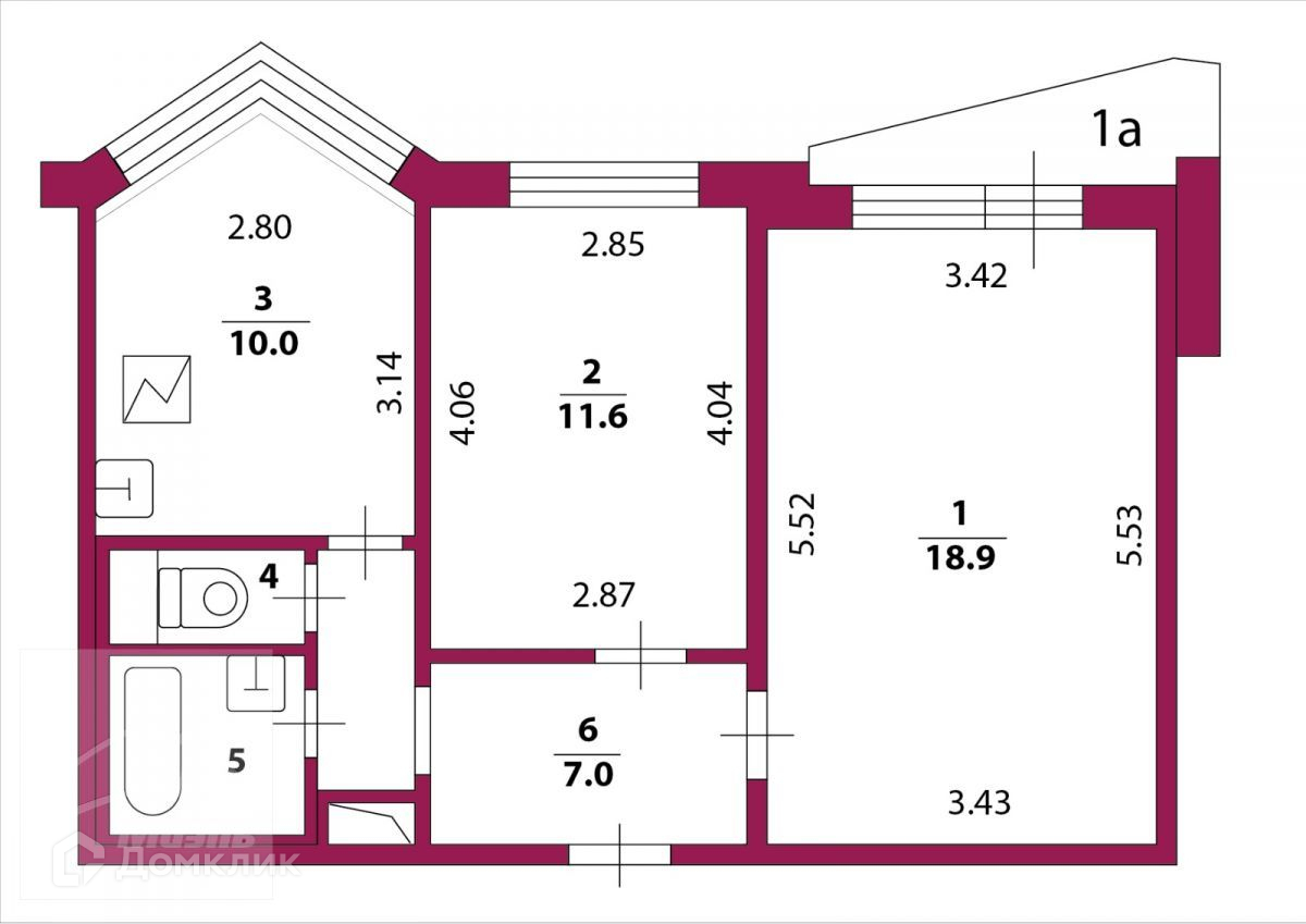 Общая площадь 51.4 м2