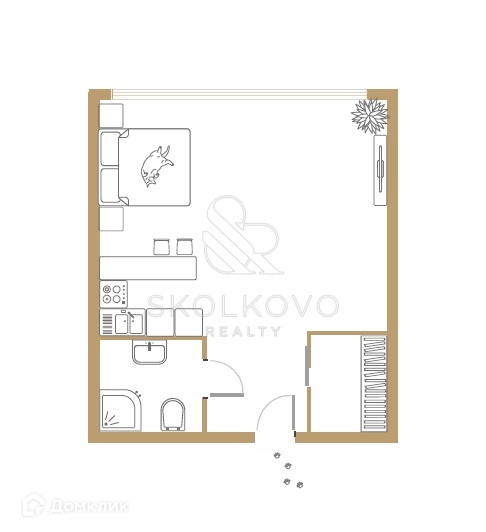 Планировка: Спальня совмещенная с гостиной ,ванная комната с душевой кабиной. В спальне двуспальная KING-size кровать. Ванная комната выполнена в современном и необычном цветовом решении.