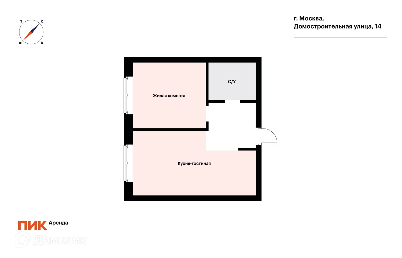 1-комнатная квартира, 36.2 м2, в аренду на длительный срок в Москве, Домостроительная улица, 14