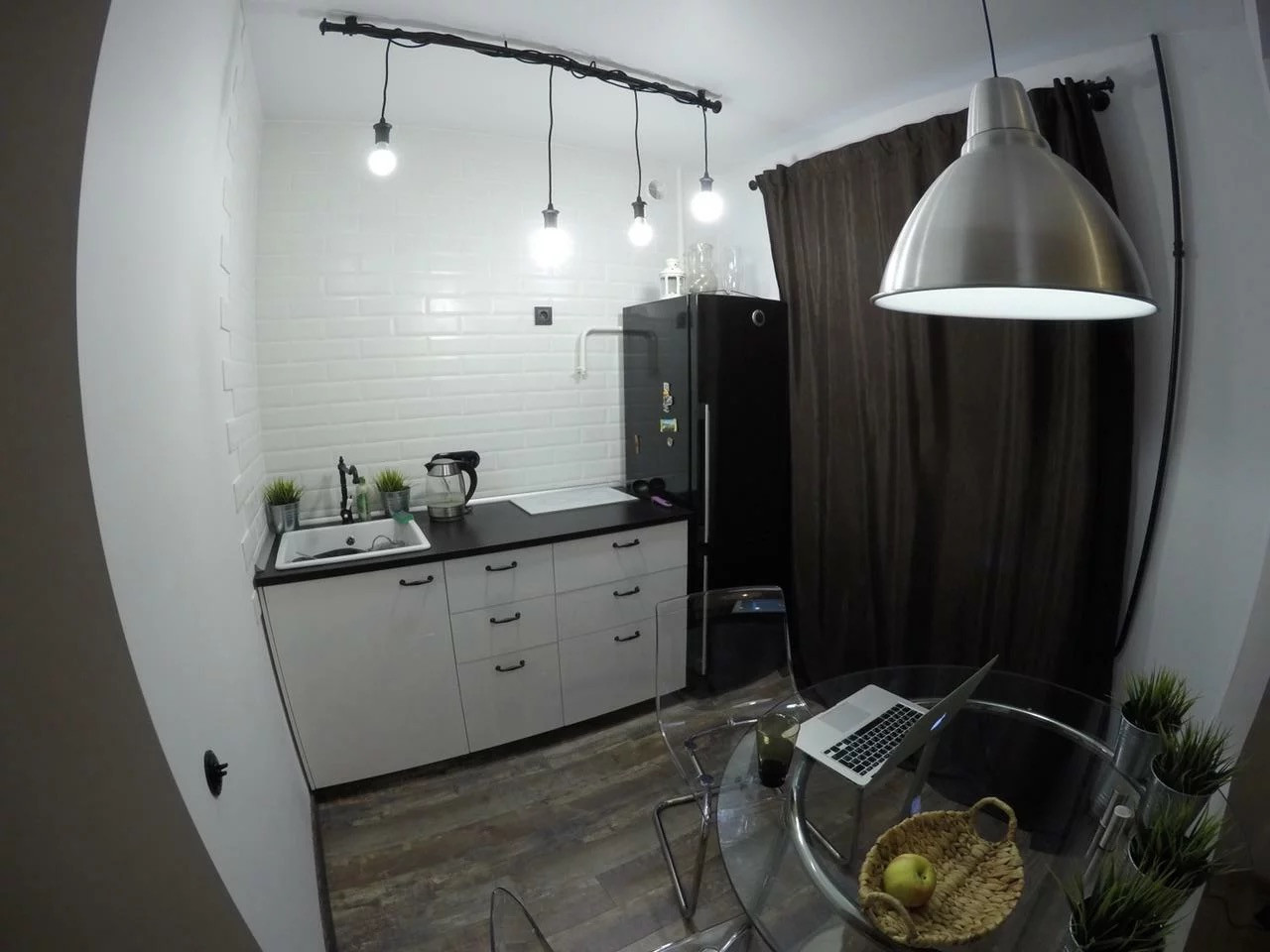 Стильное пространство для комфортного проживания оборудовано всем необходимым: удобная кровать, рабочее место с теплым освещением, вместительный шкаф, зеркало. Светлая кухня зонирована для комфортного проживания и отдыха.