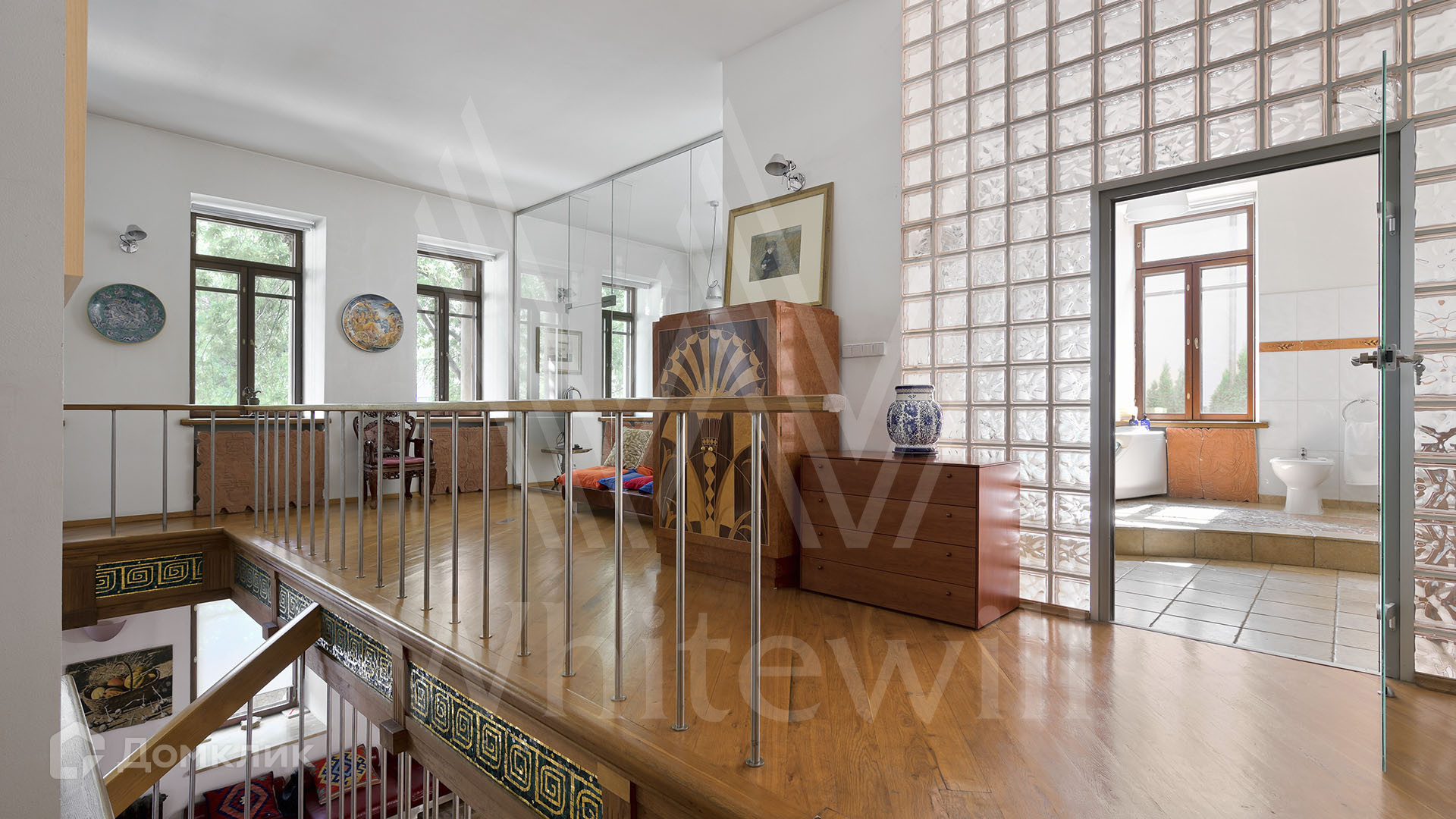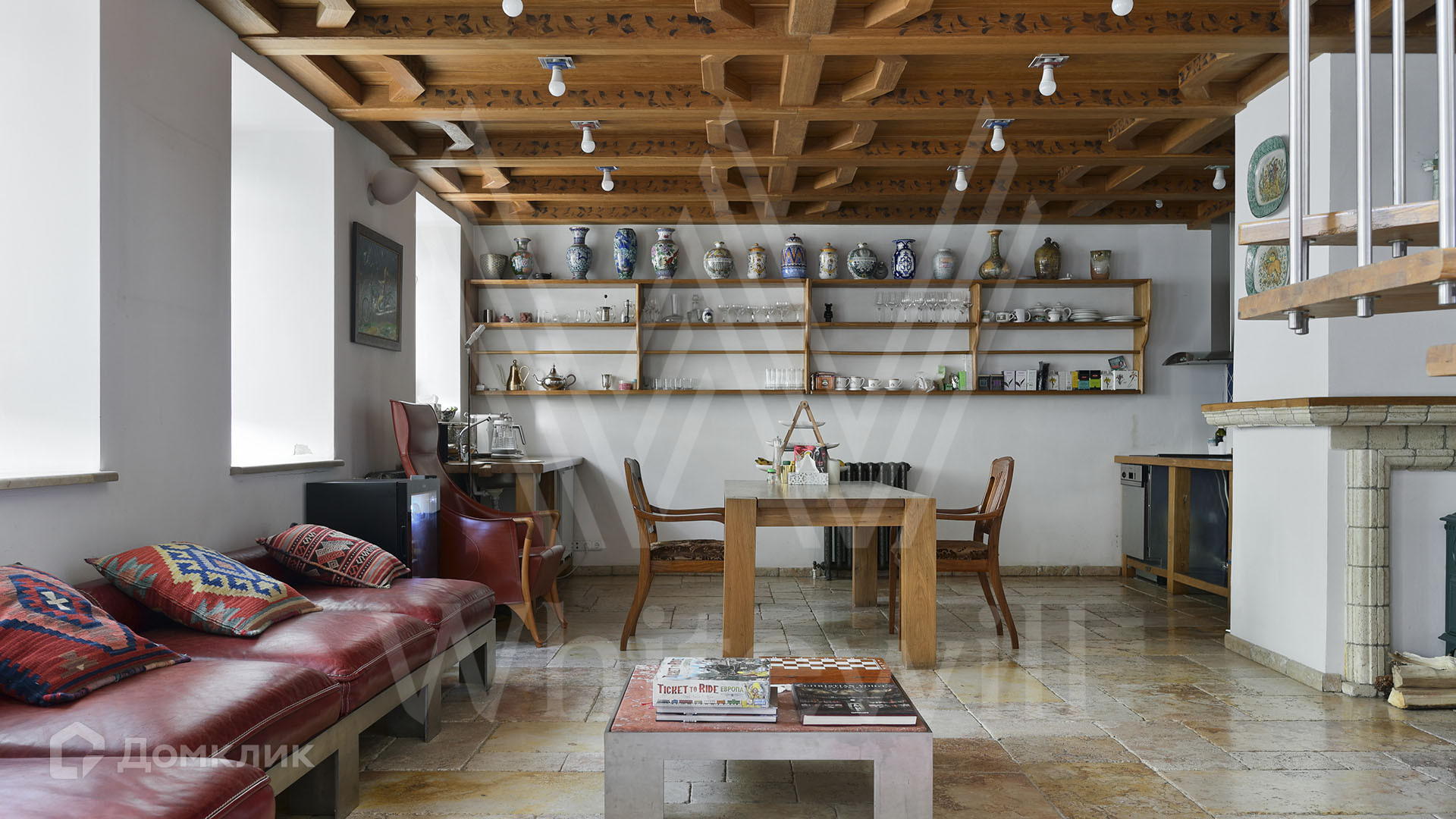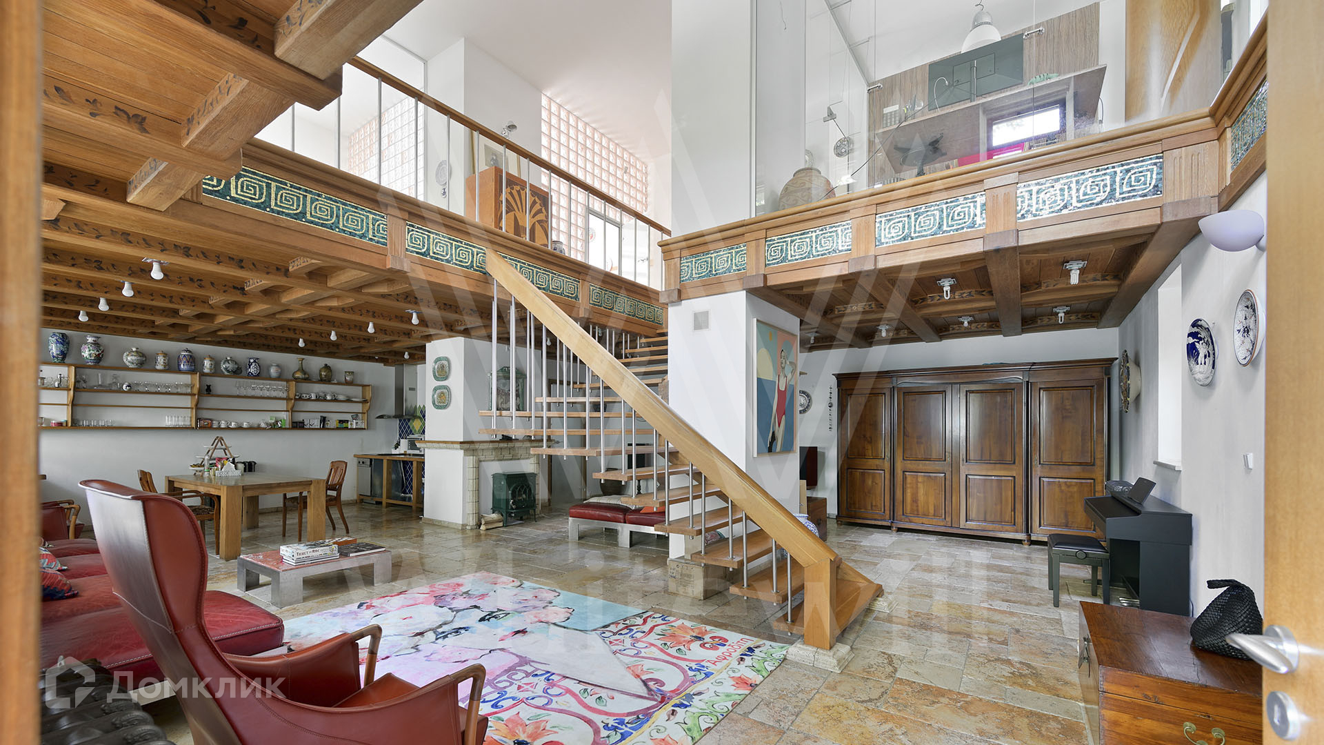 ID 2 275. С коллегами работаем 50/50. Двухуровневая квартира с 2-мя спальнями общей площадью 163 м² в клубном особняке в Хамовниках. Выполнен дизайнерский ремонт в средиземноморском стиле, интерьер дополняют деревянный резной потолок, картины, вазы и статуэтки. В гостиной установлен камин. Большое количество окон и потолки высотой 3,7 метра наполняют пространство светом.