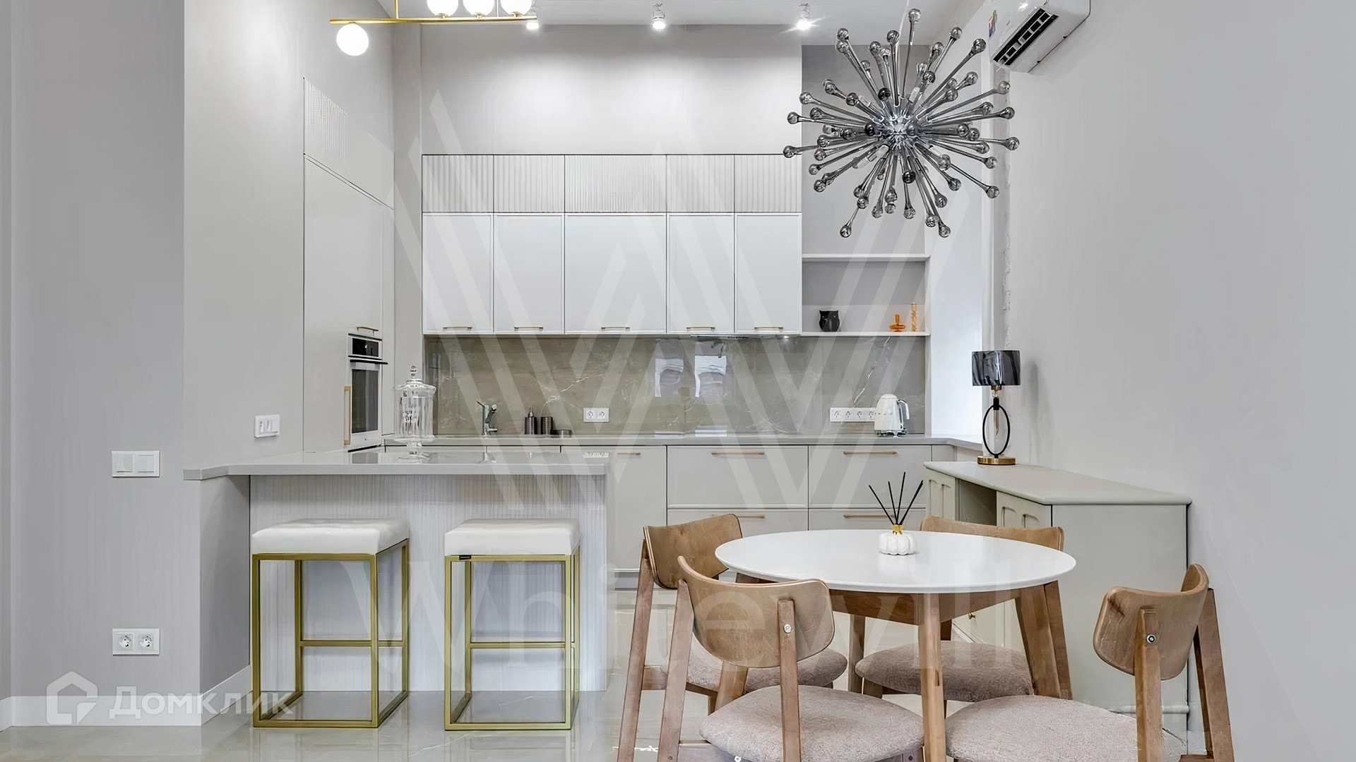 Спланирована кухня-гостиная с барной стойкой и обеденной зоной, мастер-спальня с собственной гардеробной, комната свободного назначения, которую можно оборудовать в спальню или кабинет, санузел с душевой, прихожая. Квартира меблирована и укомплектована бытовой техникой, установлены кондиционеры. Из окон открываются виды на улицу и в тихий двор.