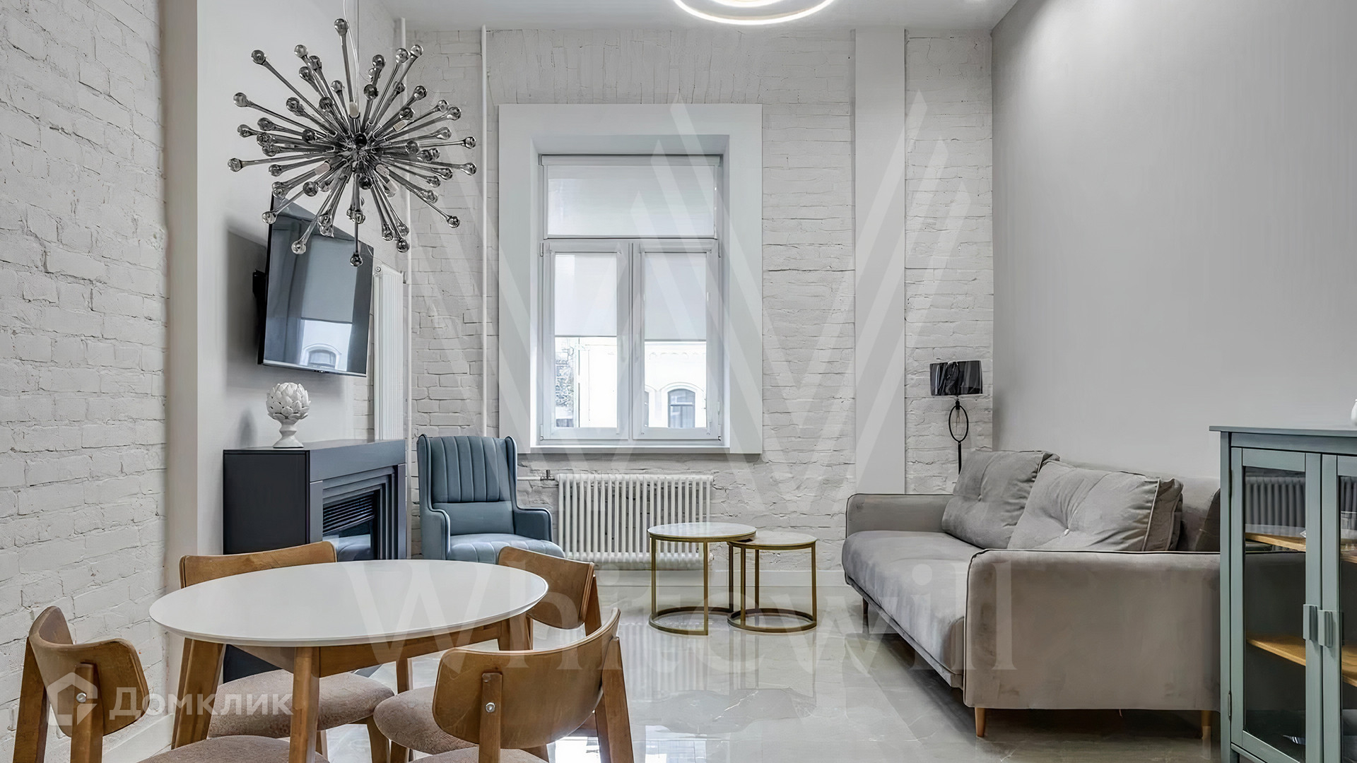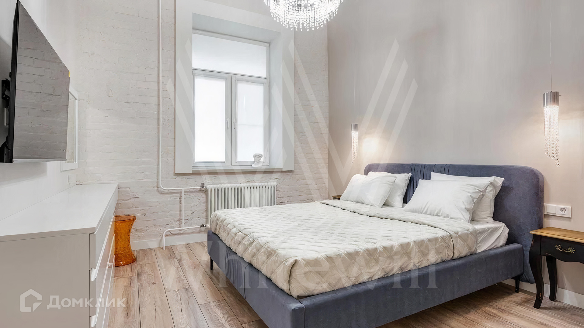 ID 2 285 Квартира с 2-мя спальнями общей площадью 76 м² в доме «Малая Дмитровка, 8». Квартира расположена на 2-м этаже. Выполнен новый дизайнерский ремонт в стиле «минимализм» в светлых тонах. Часть стен оформлены открытой кирпичной кладкой, потолки высотой 3,6 метров украшены подвесными люстрами. В гостиной установлен электрокамин. После ремонта в квартире никто не жил.