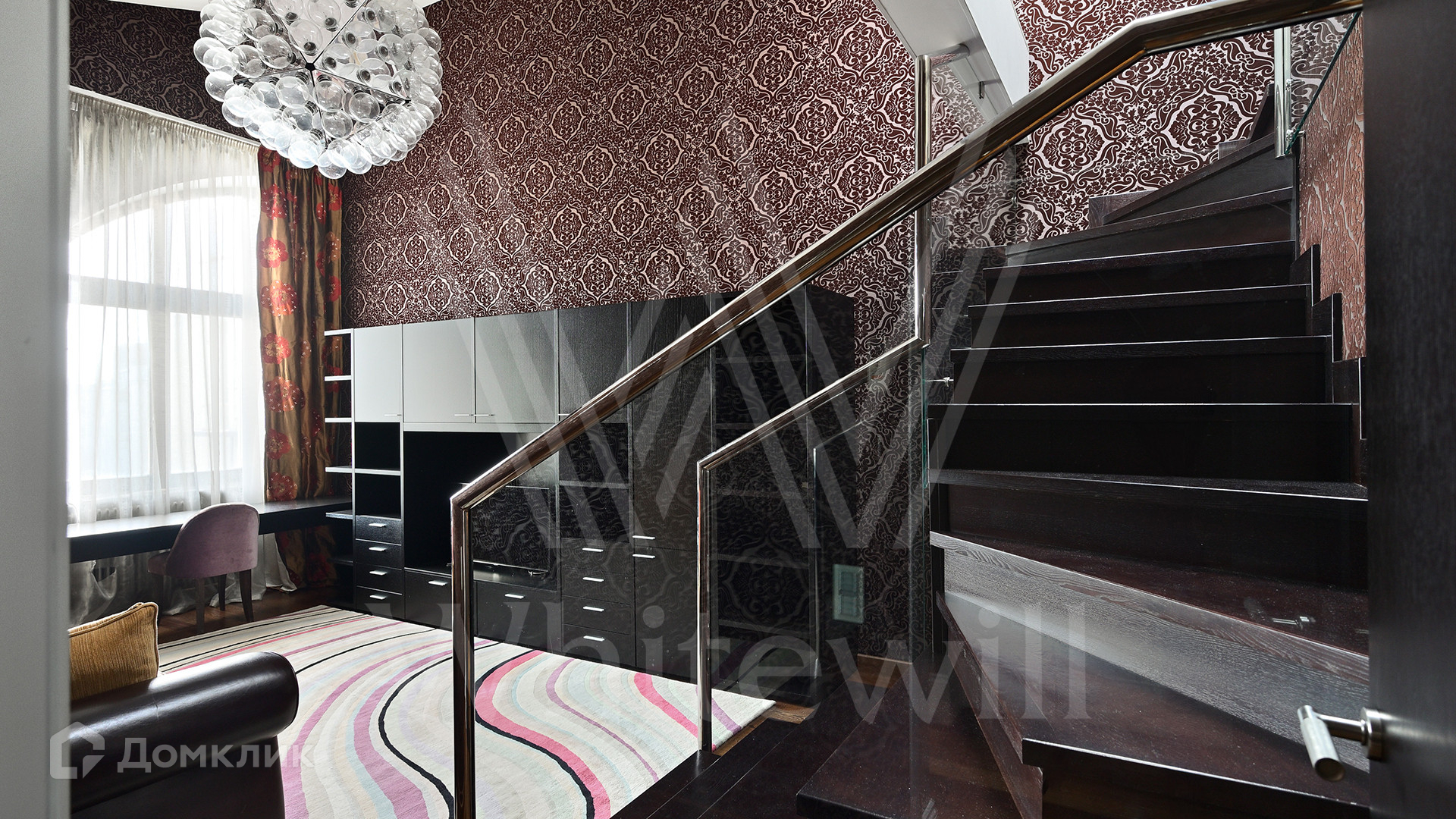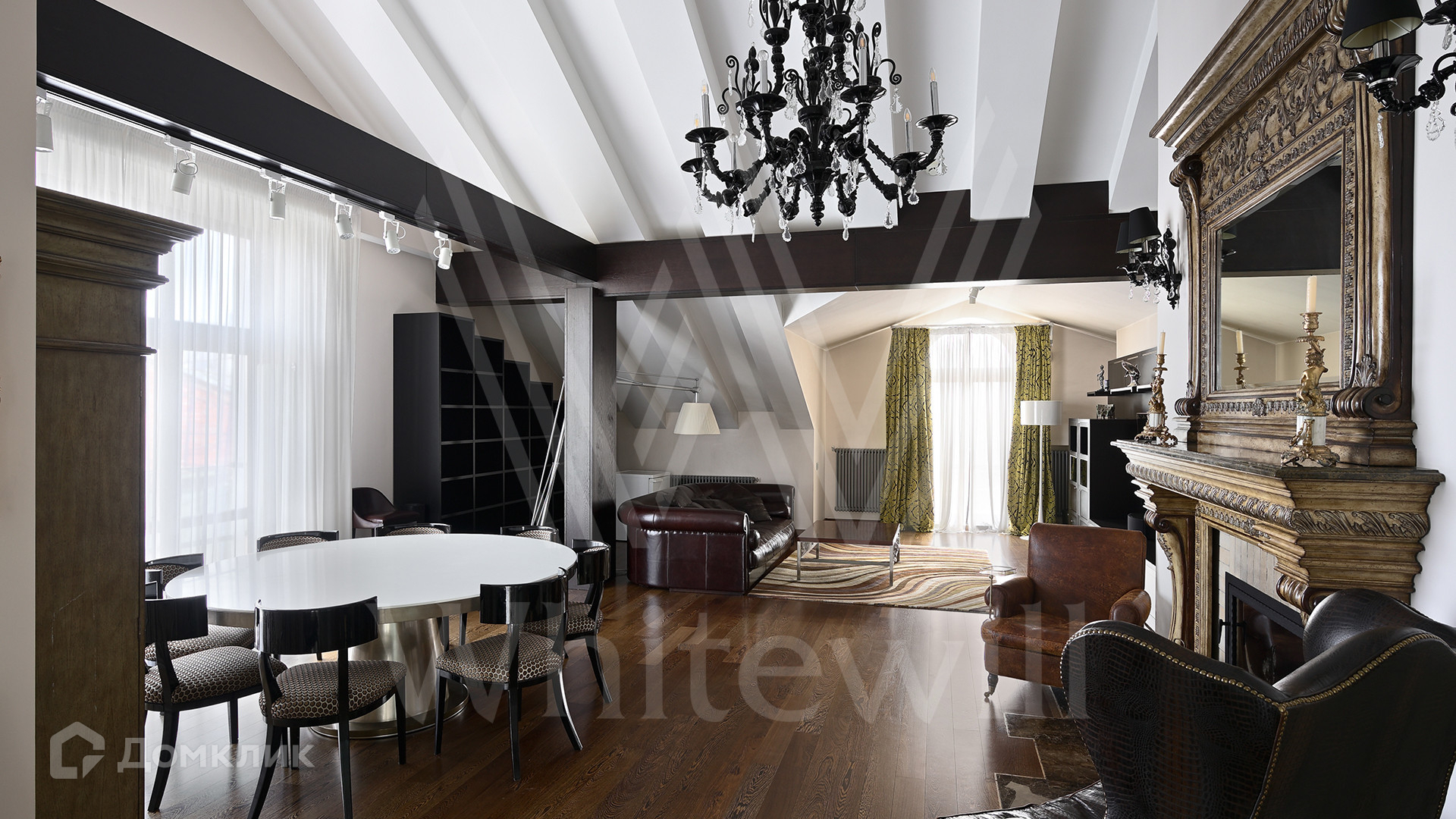 ID 2 025. С коллегами работаем 50/50. Двухуровневый пентхаус общей площадью 283 м² в клубном доме в тихом переулке у Покровского бульвара. Одна квартира на этаже. Выполнен дизайнерский ремонт в классическом стиле с использованием натуральных материалов — итальянский мрамор в отделке санузлов, полы из дерева венге. Высота потолков до 5,5 метров. Интерьер дополняют картины 19 века, итальянские хрустальные люстры бренда Barovier&Toso, зеркала с резными рамами. В гостиной установлен действующий камин.