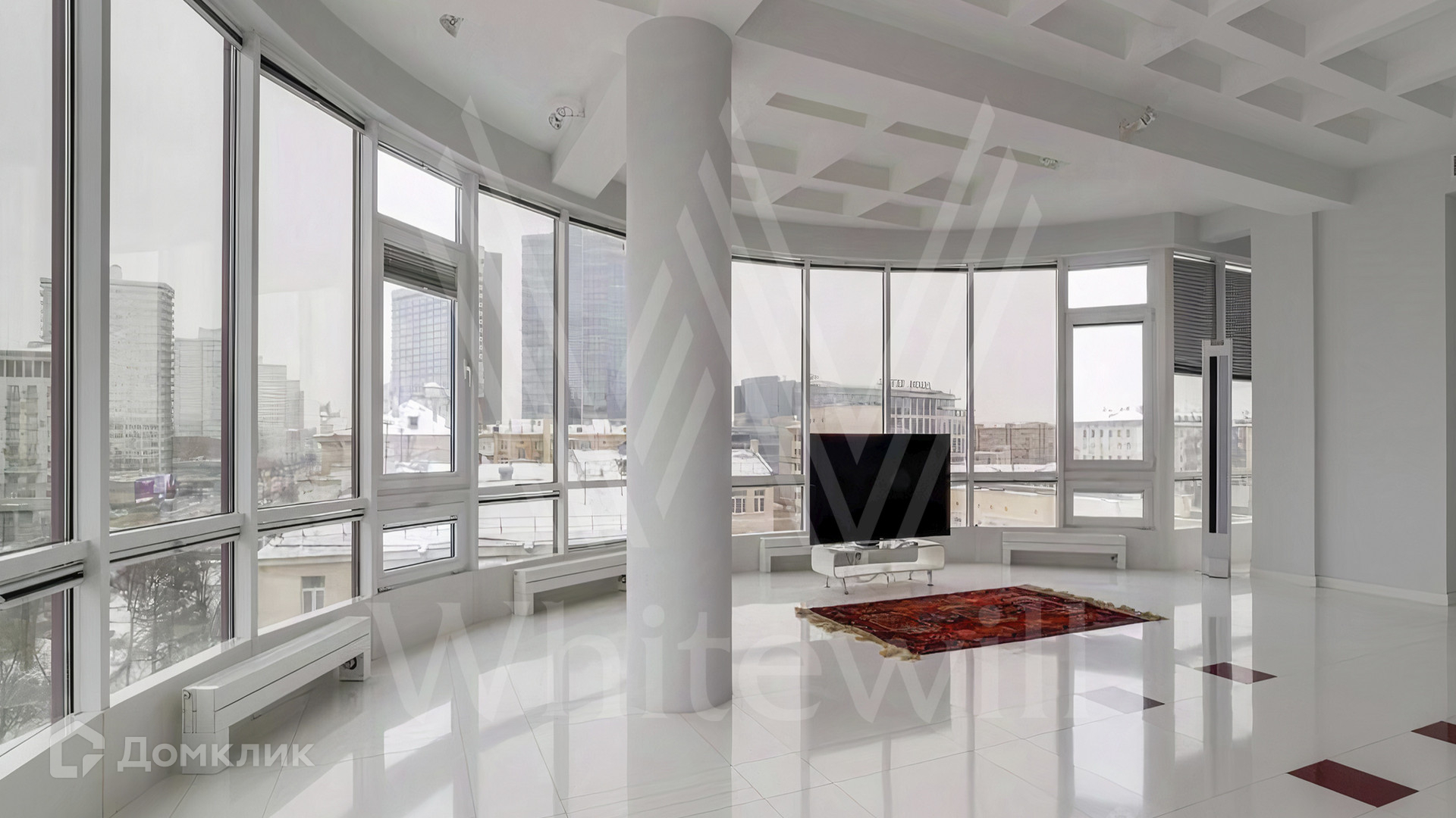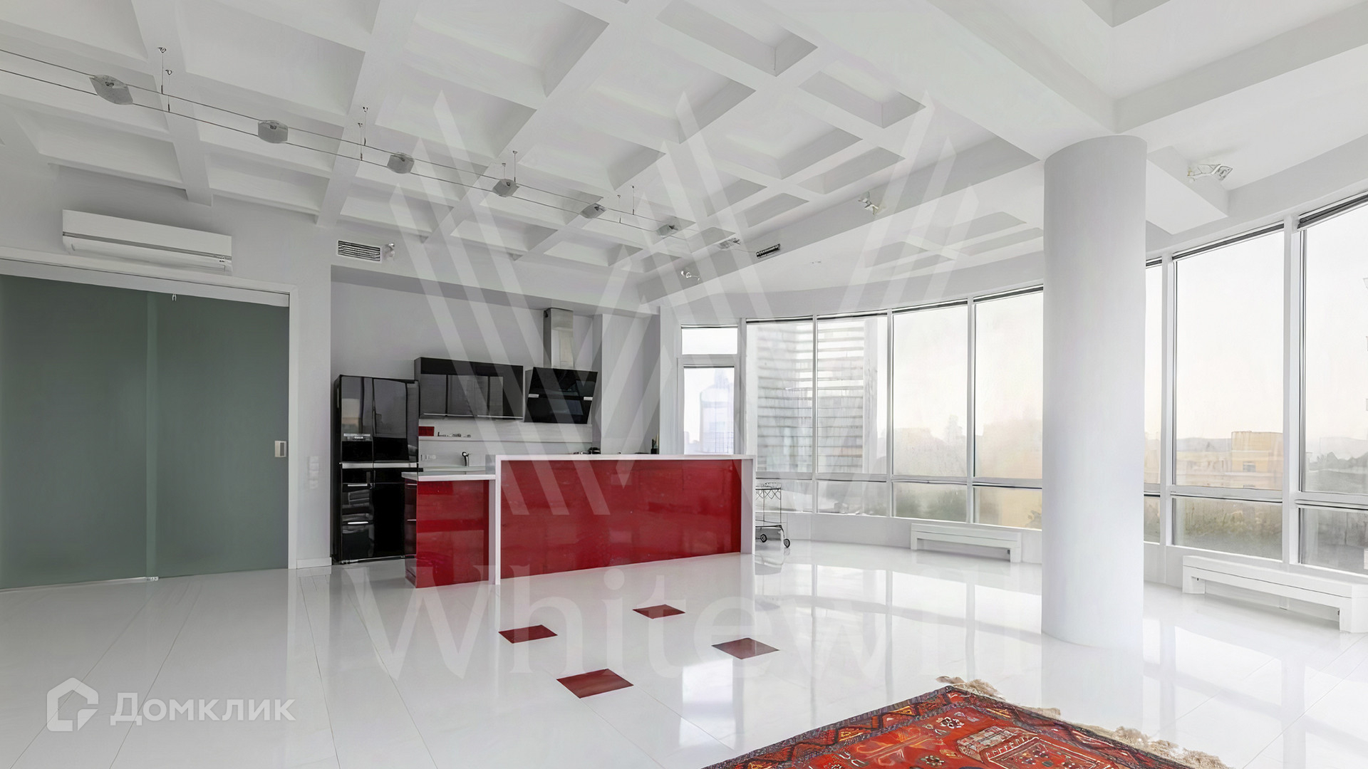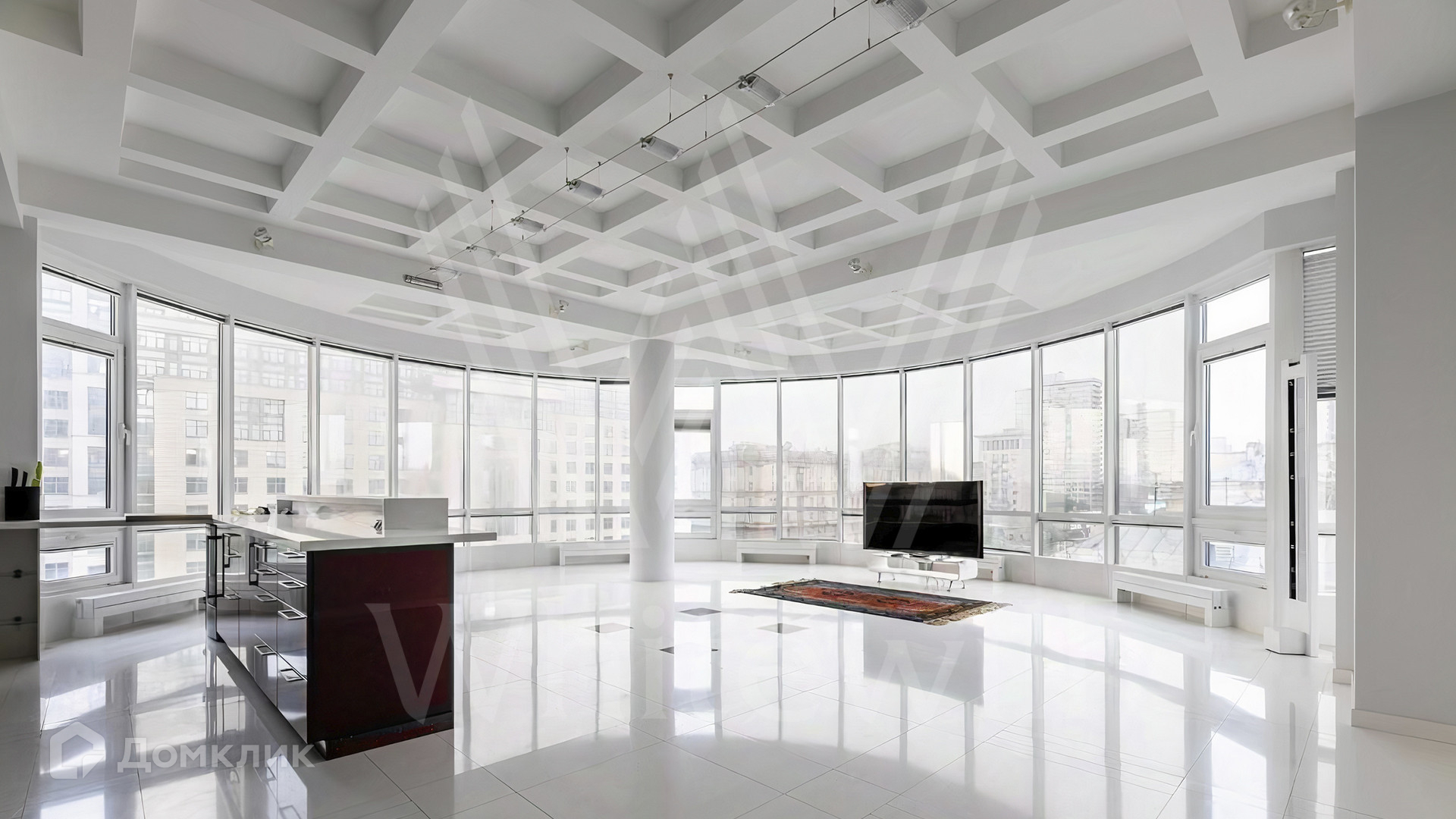 ID 1 730. С коллегами работаем 50/50. Квартира с 2-мя спальнями площадью 200 м² расположена на 7 этаже в комплексе на Новом Арбате. Выполнен дизайнерский ремонт по индивидуальному проекту с применением высококачественных материалов. Планировка включает просторную гостиную нестандартной формы и панорамным остеклением, совмещенную с оборудованной кухней, две большие спальни с персональными санузлами и гардеробными. Дополнительно спланировали гардеробные и постирочную.