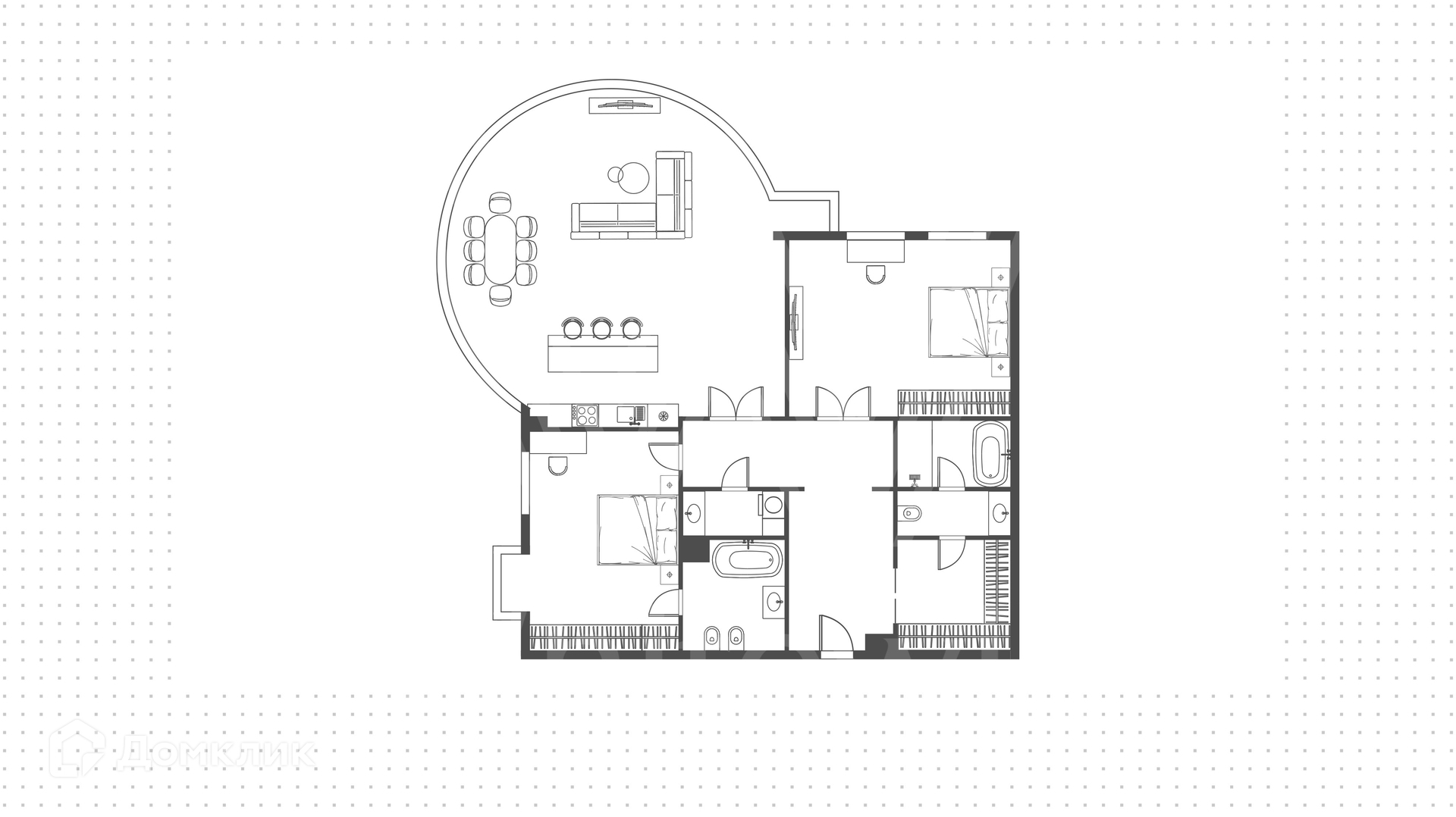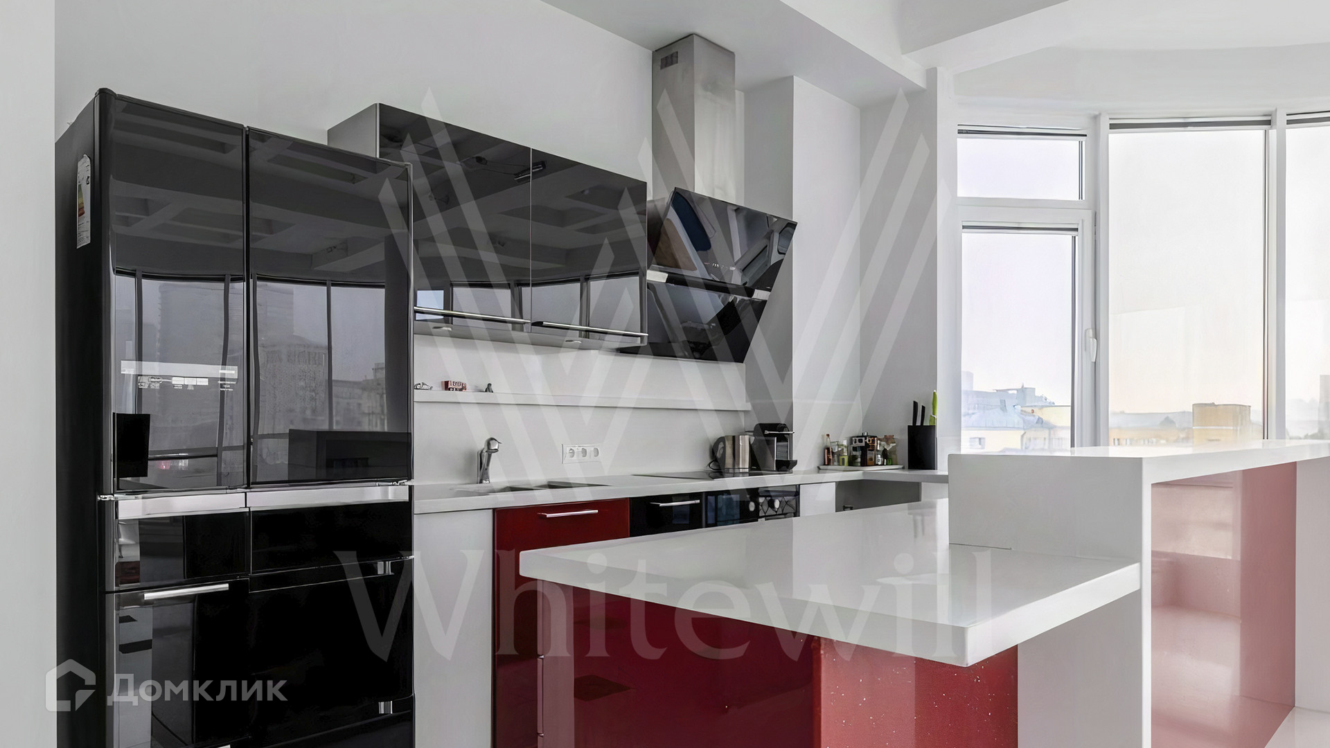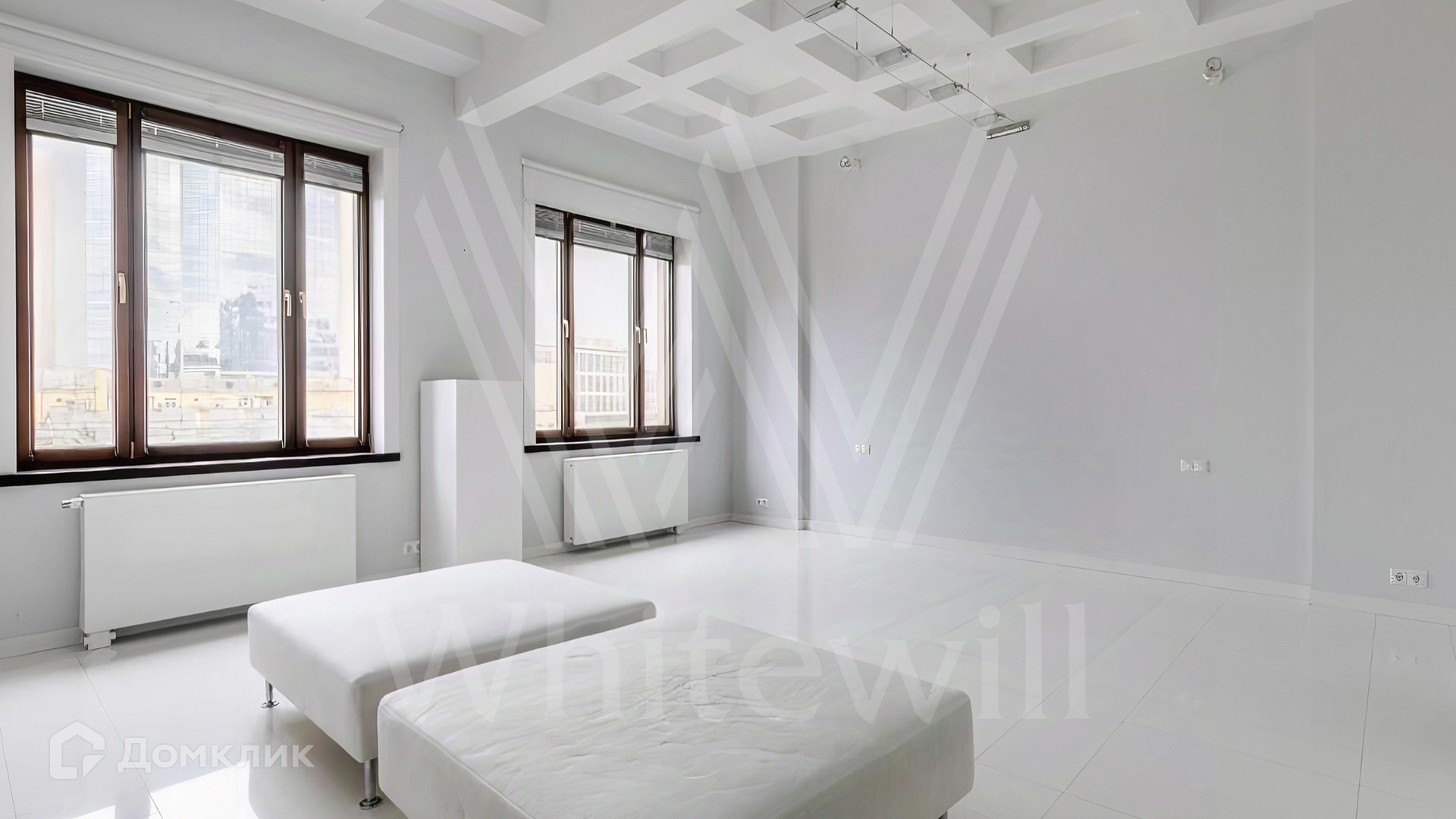 ID 1 730. С коллегами работаем 50/50. Квартира с 2-мя спальнями площадью 200 м² расположена на 7 этаже в комплексе на Новом Арбате. Выполнен дизайнерский ремонт по индивидуальному проекту с применением высококачественных материалов. Планировка включает просторную гостиную нестандартной формы и панорамным остеклением, совмещенную с оборудованной кухней, две большие спальни с персональными санузлами и гардеробными. Дополнительно спланировали гардеробные и постирочную.