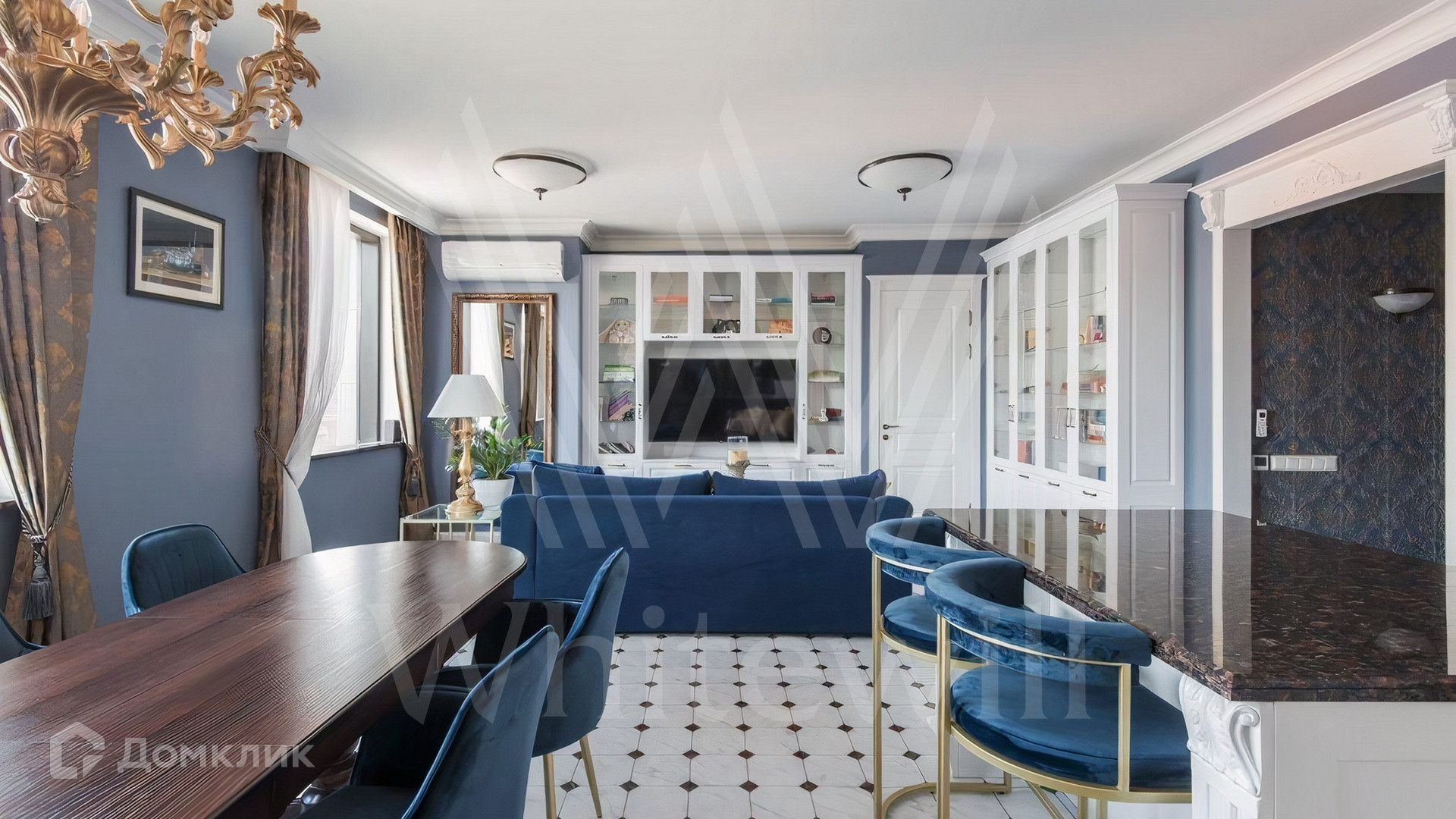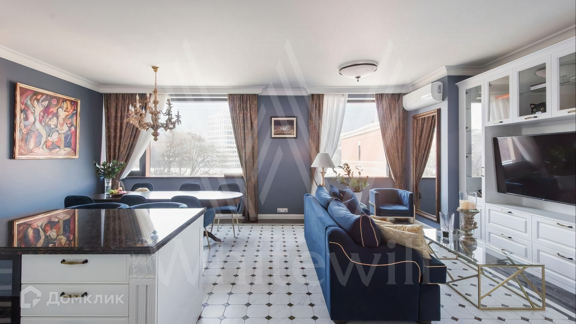 ID 649. С коллегами работаем 50/50. Просторная квартира площадью 110 м² в комплексе Wine House на острове Балчуг в центре Москвы. Выполнена дизайнерская отделка в стиле ар-деко.
