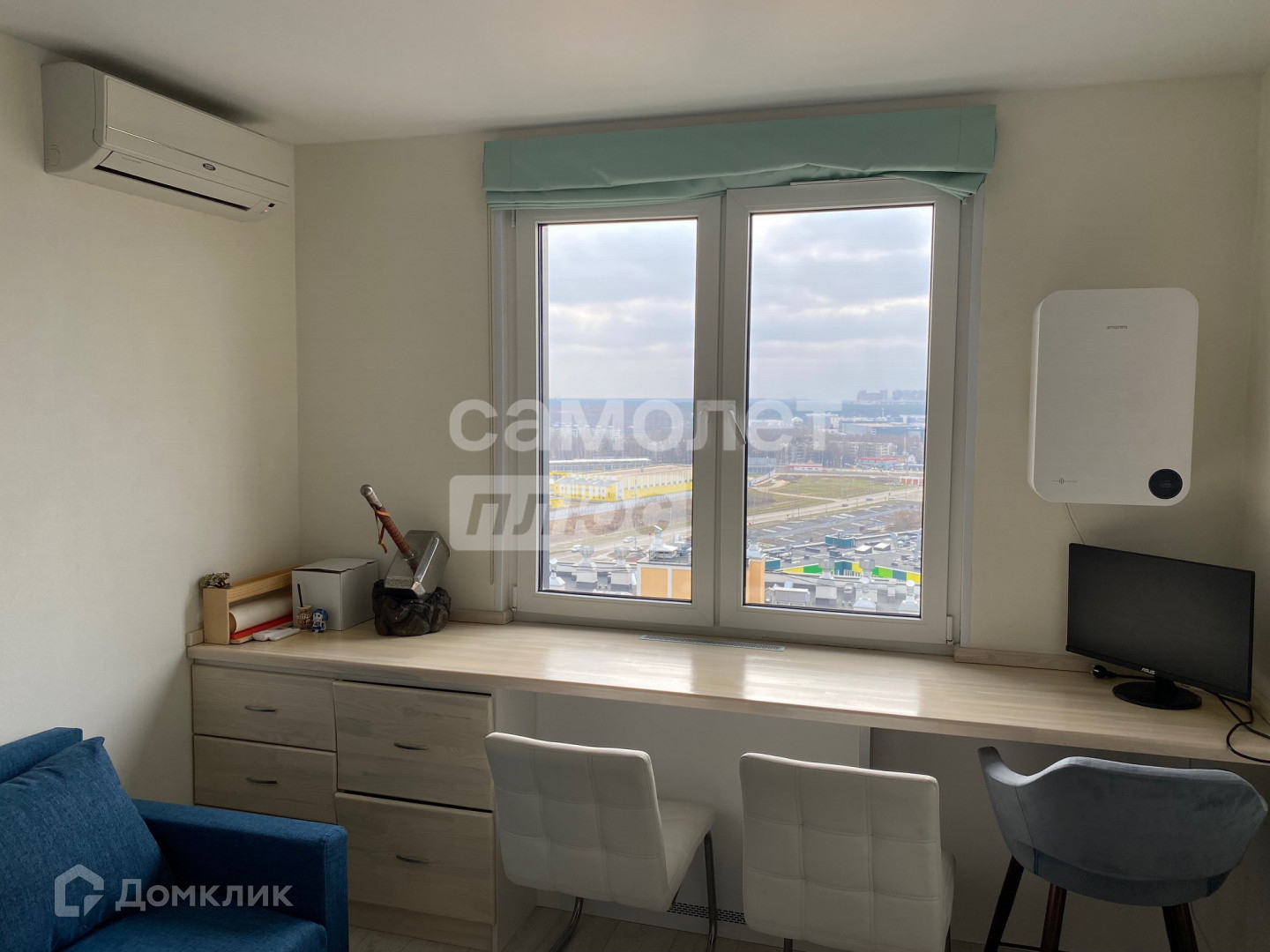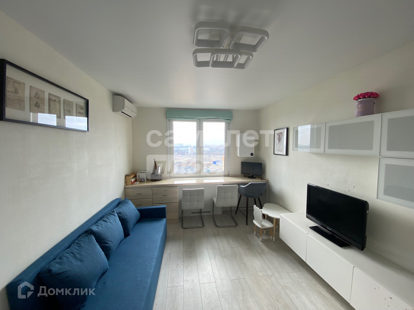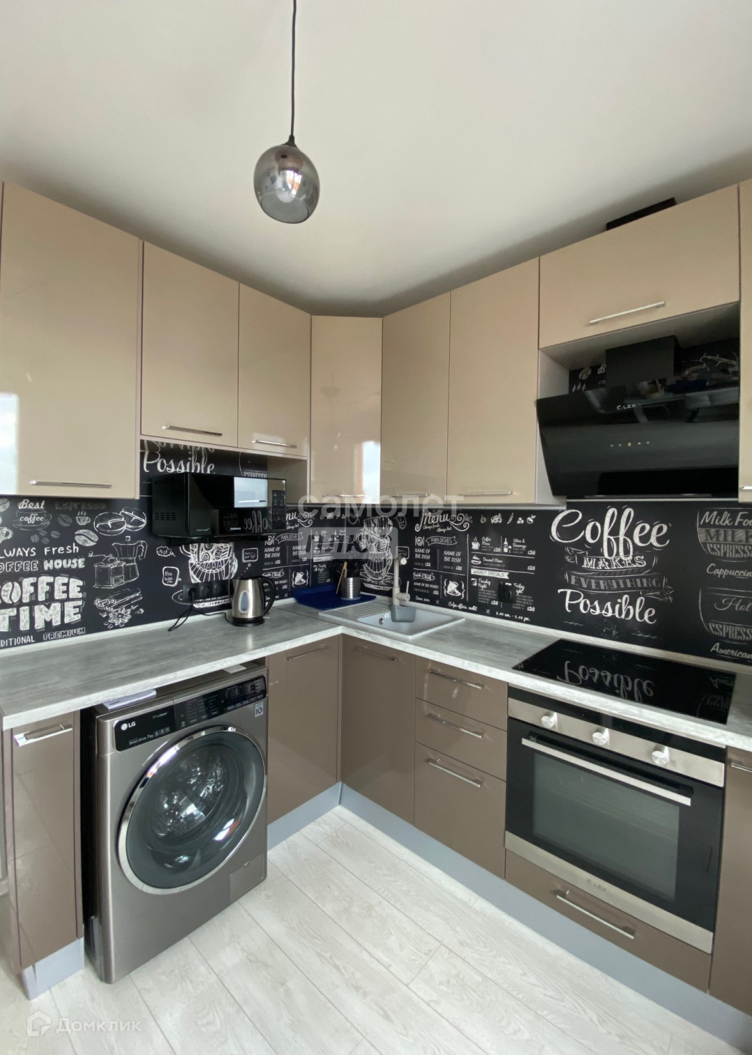 Бытовая техника : холодильник , стиральная машина , духовой шкаф , варочная панель, микроволновая печь, кондиционеры на кухне и в комнате .