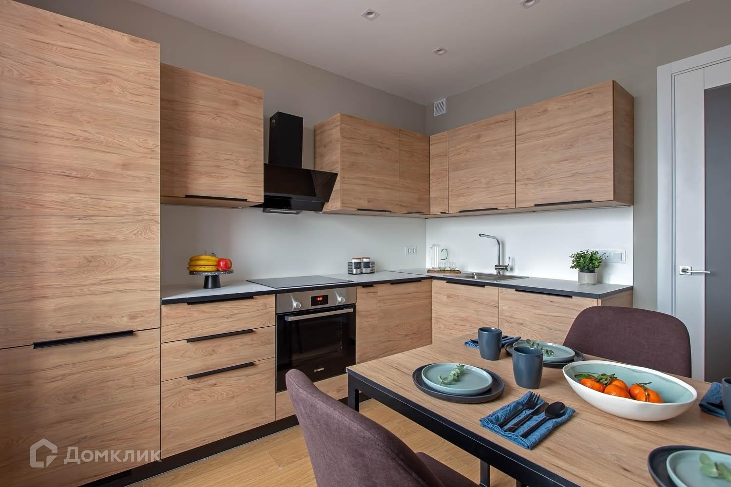 Квартира с индивидуальным интерьерным решением в современном стиле, качественной отделкой, мебелью и техникой для жизни от ведущих брендов (Bosch):