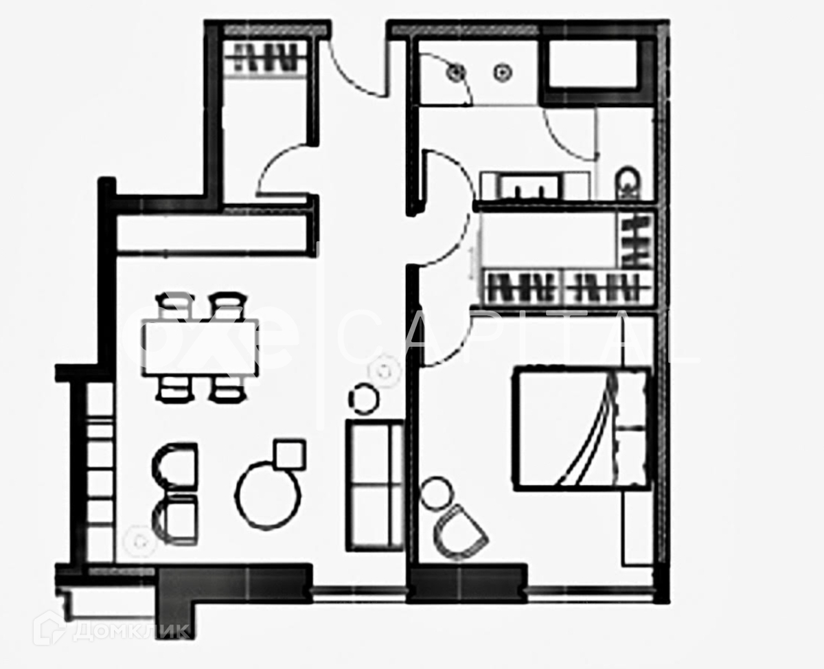 Функциональная планировка: кухня-гостиная, спальня, санузел, постирочная, гардеробная.