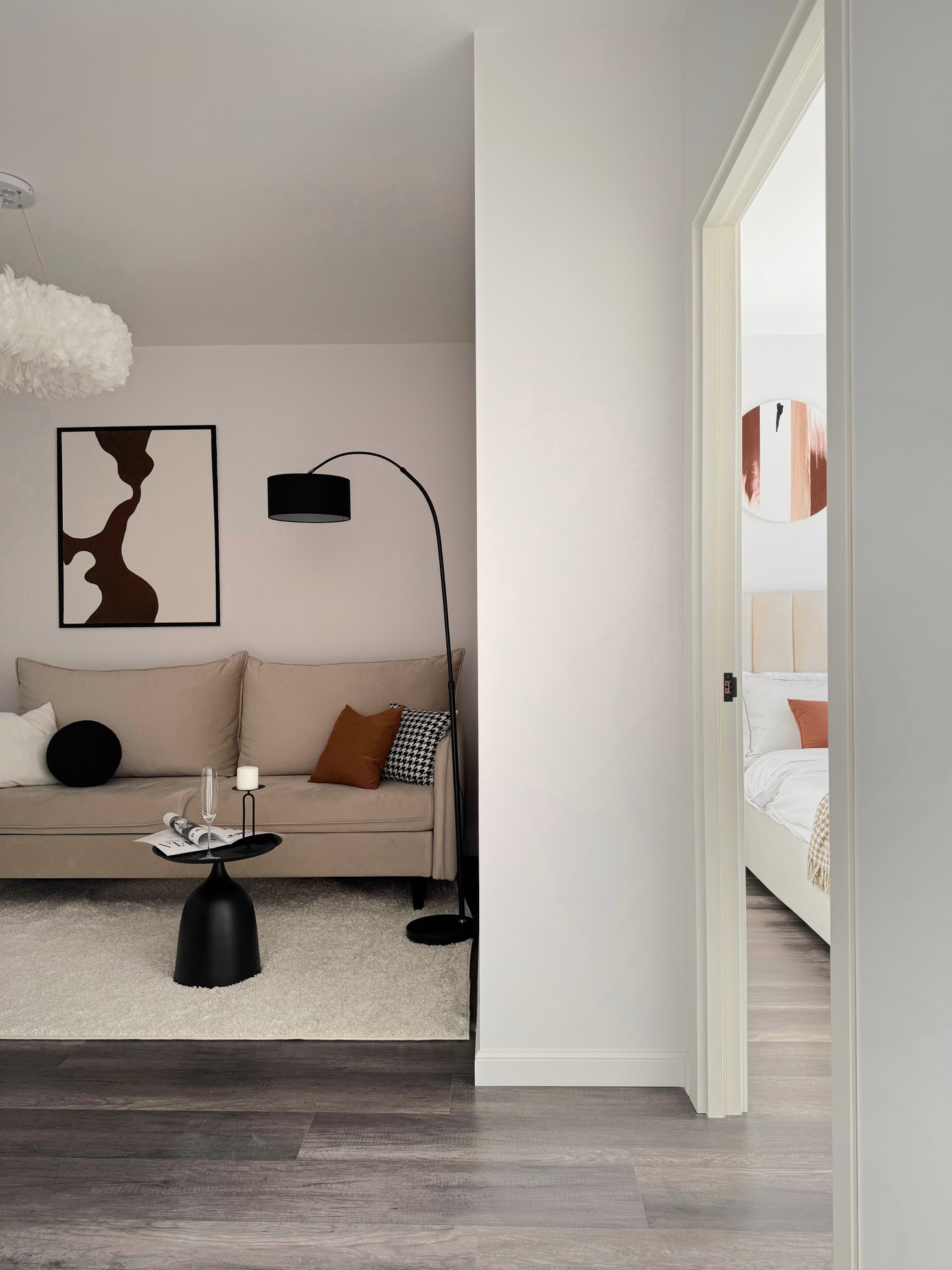 Квартира состоит из изолированной спальни, кухни с гостиной, просторного санузла и большой лоджии с панорамным окном.