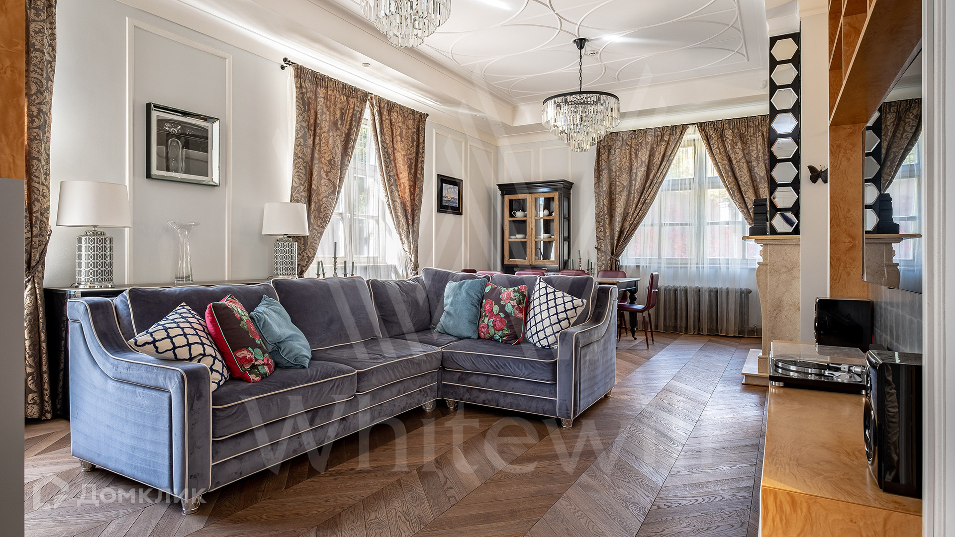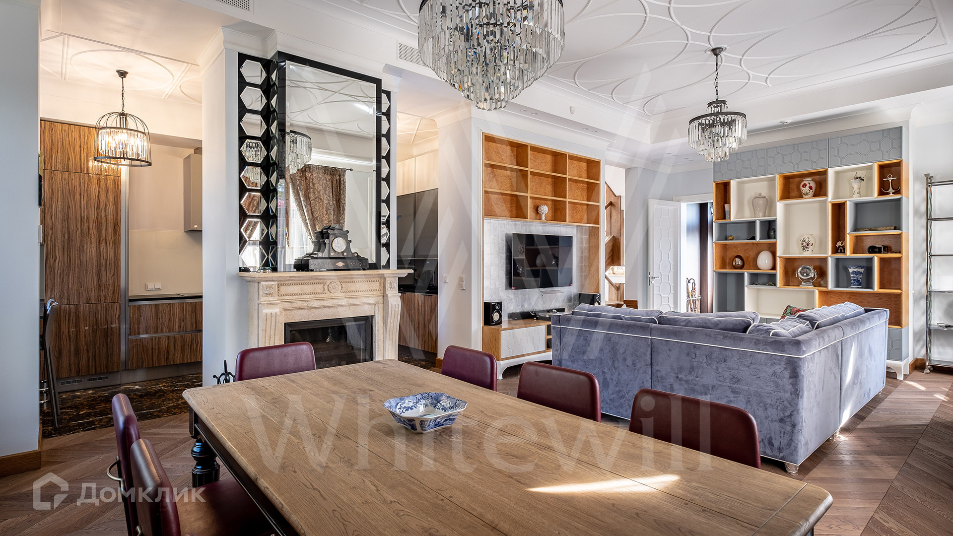 ID 2 252 Трёхуровневый таунхаус площадью 180 м² в комплексе премиум-класса Tweed Park на территории природно-исторического усадебного парка «Покровское-Стрешнево». Таунхаус расположен на приватной территории с выходом в парк. Выполнена дизайнерская премиальная отделка в английском стиле с использованием натурального мрамора и высококачественных натуральных материалов. Интерьеры укомплектованы мебелью от ведущих европейских производителей и бытовой техникой.