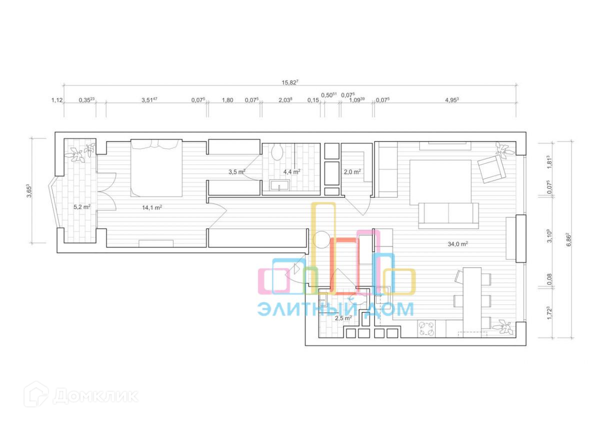 Площадь кухни 15 м2