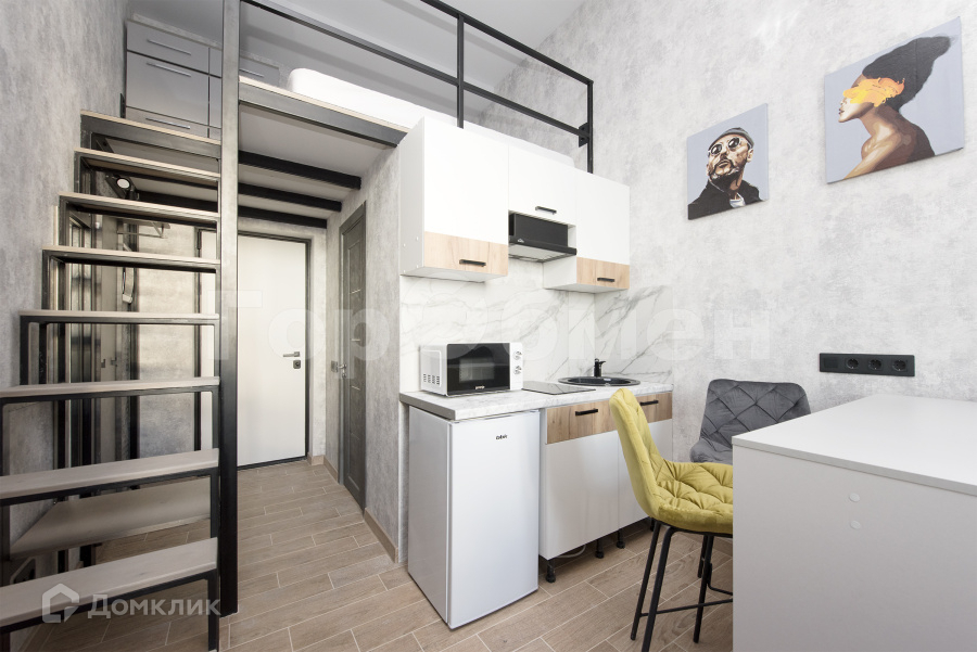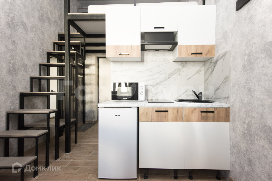 Полный комплект техники: смарт ТВ, кондиционер, стиральная машина, микроволновая печь, утюг. Кухонный гарнитур со встроенной бытовой техникой: холодильник, варочная панель, микроволновая печь и чайник. В спальной зоне на втором уровне качественный ортопедический матрас, внизу раскладной диван с пружинным блоком. Системы хранения вещей есть на 1 и 2 уровнях.