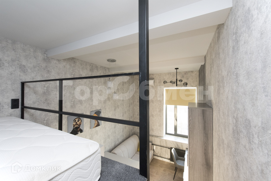 Стильная двухуровневая студия с дизайнерским ремонтом. Окна выходят во двор с прекрасным видом на рассвет и закат. Штора блэкаут для затемнения.