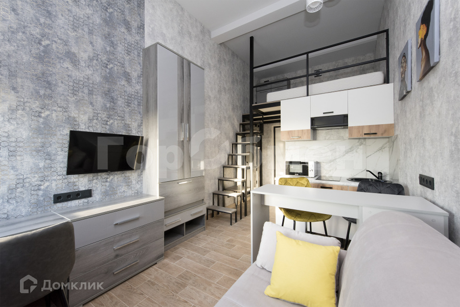 Студия полностью оборудована для проживания: посуда, постельное белье.