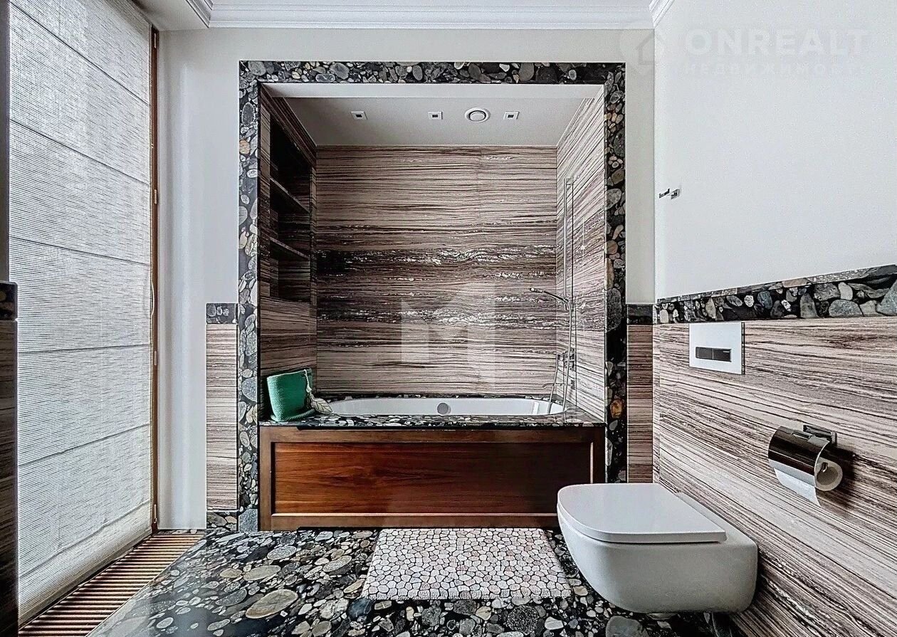 Квартира обладает общей площадью 205 квадратных метров и предлагает роскошную планировку, включающую просторную зону гостиной объединённую с кухонной зоной, три спальни, три ванны, каждая оснащена душевыми кабинками и ваннами, три гардеробные комнаты, функциональную постирочную комнату и удобный гостевой санузел. Высококачественная отделка выполнена по авторскому дизайнерскому проекту с применением природных материалов, создавая атмосферу утончённого вкуса и комфорта. Вся мебель и бытовая техника ведущих мировых брендов установлена и готова к использованию новыми жильцами.