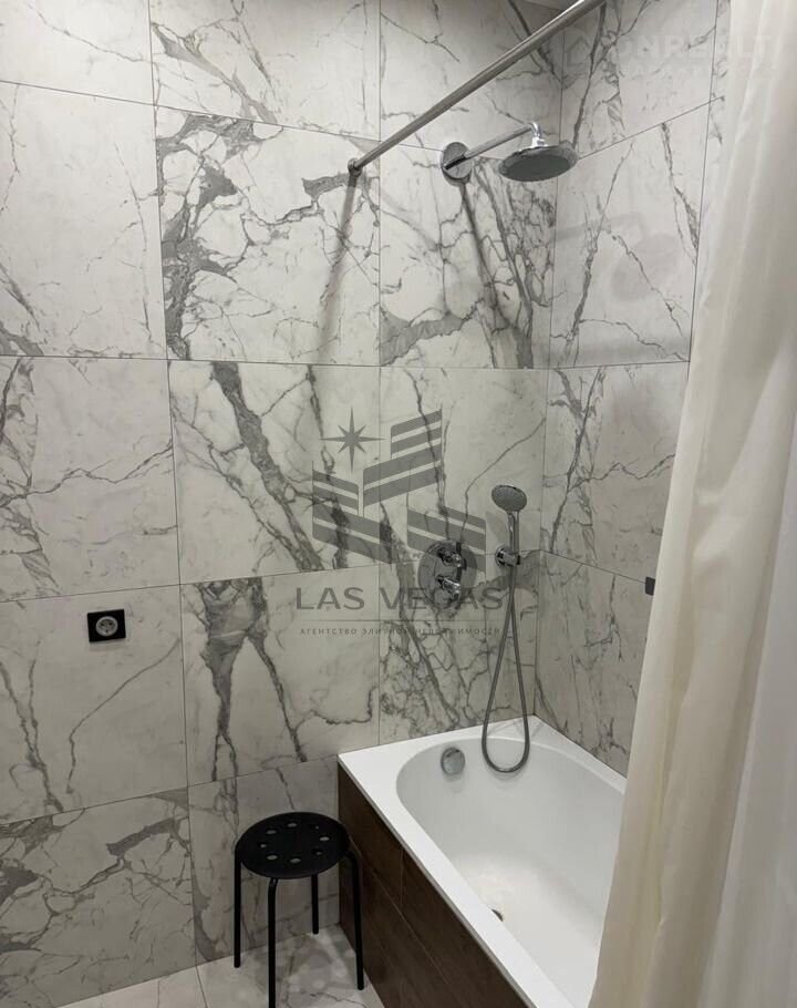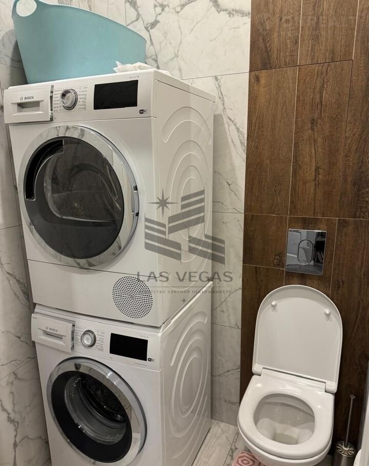 В санузле —ванна, стиральная и сушильная машина. Вся мебель и техника новые, квартира полностью готова к проживанию.
