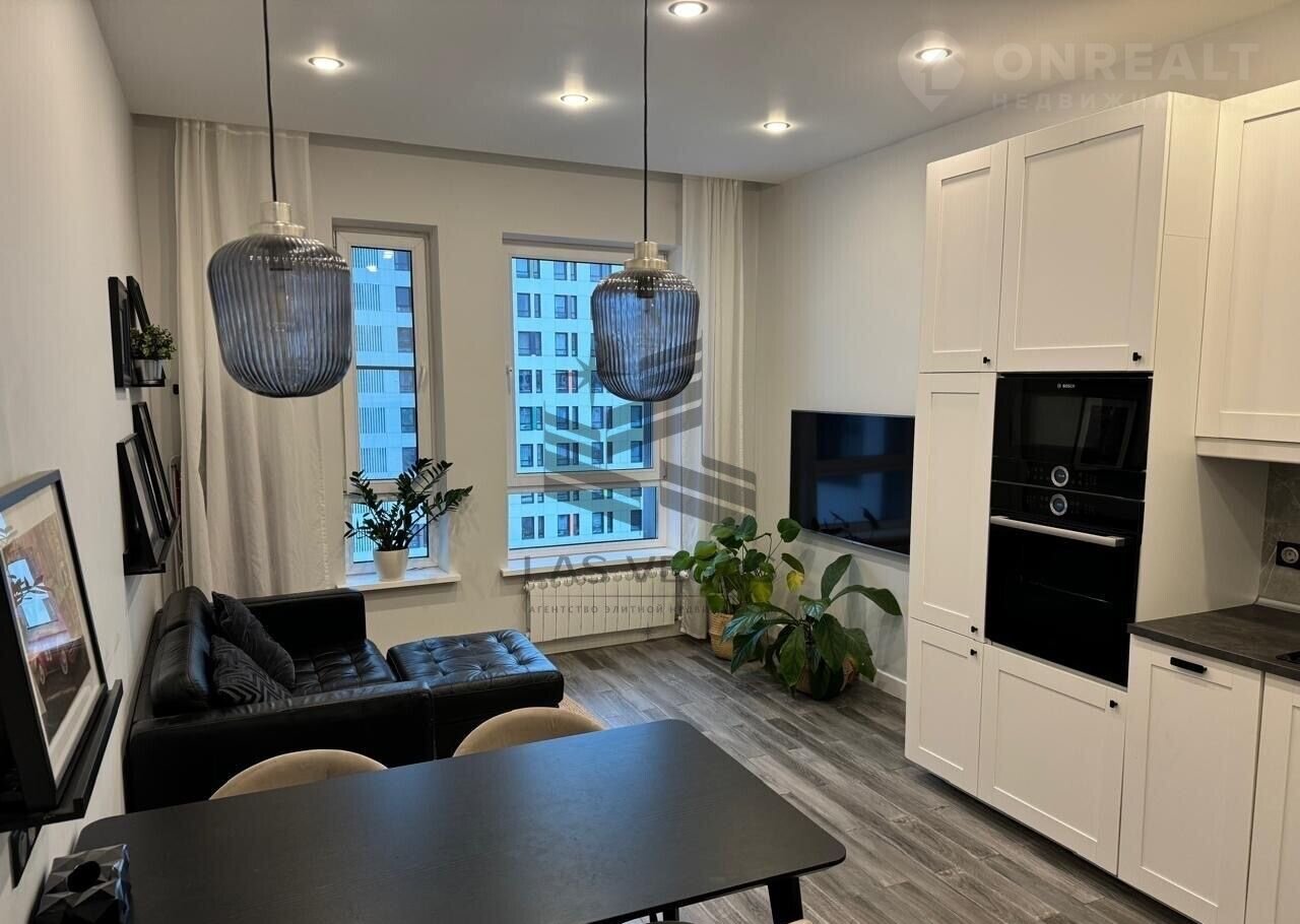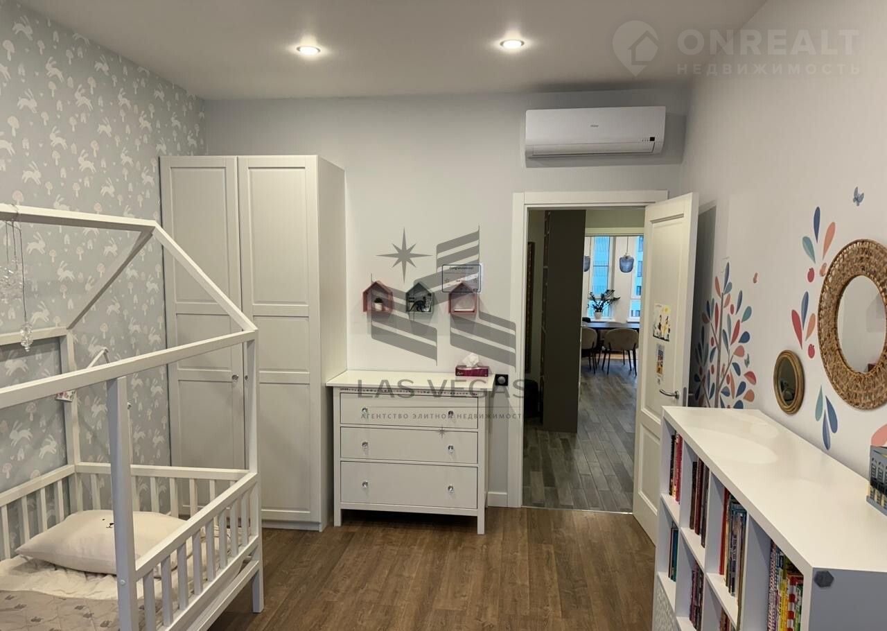 Интеpьер выполнeн по aвтoрскому дизайн-проекту в нейтральных и благородных оттенках серого и белого. Современные фактуры, мягкое освещение, качественная отделка создают атмосферу уюта и простора. Так же в квартире имеется детская комната. Кухня укомплектована встроенной техникой: варочная панель, духовой шкаф, посудомоечная машина, холодильник.