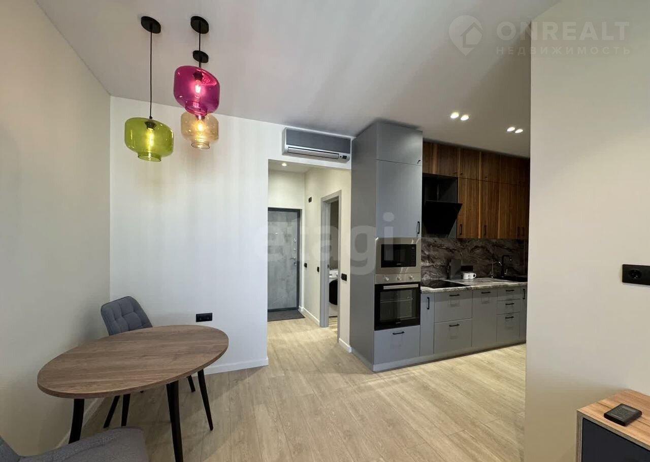 Планировка квартиры включает изолированную спальню и просторную кухню-гостиную. В спальне установлена удобная двухместная кровать и вместительный шкаф для одежды.