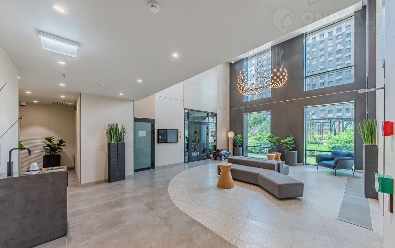 Окна выходят на улицу, что обеспечивает хорошее естественное освещение. Дом оснащён четырьмя пассажирскими лифтами и подземной парковкой, поэтому можно не беспокоиться о месте для автомобиля.