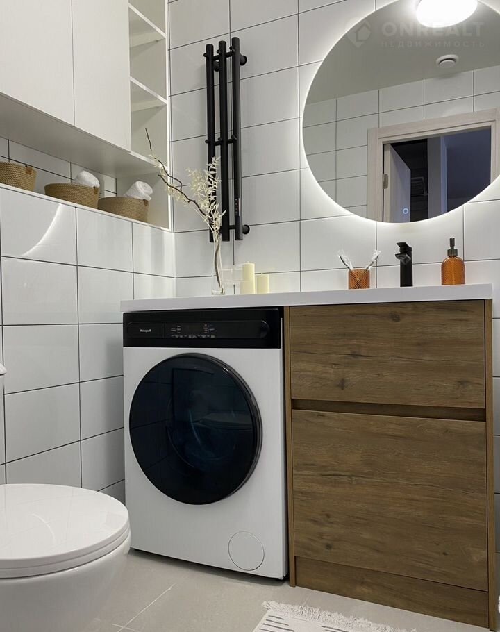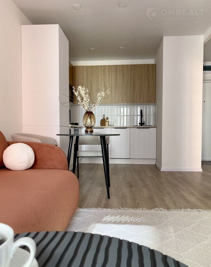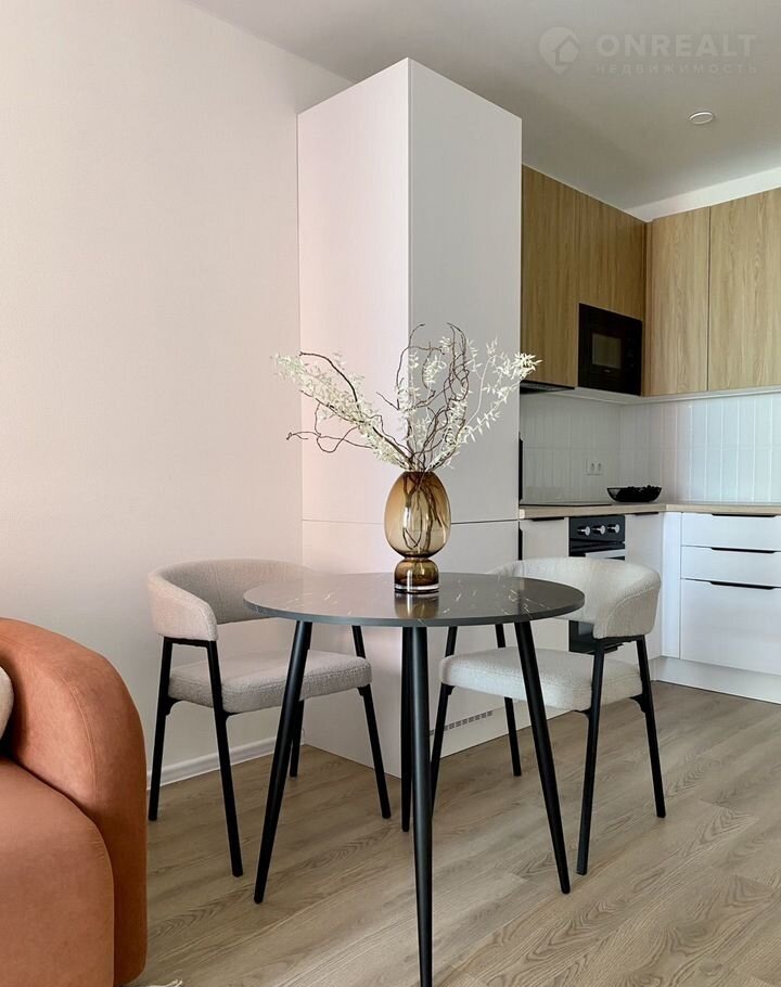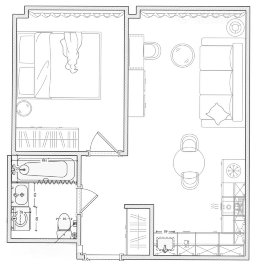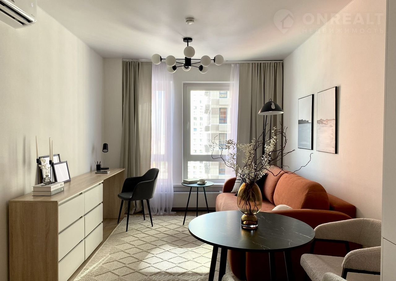 Площадь — 35 м², одна изолированная комната, кухня-гостиная, санузел и прихожая. Вся техника встроенная: вместительный холодильник, посудомоечная машина 45 см, стирально-сушильная машина, духовой шкаф, СВЧ-печь. Комфорт жильцов для нас на первом месте.