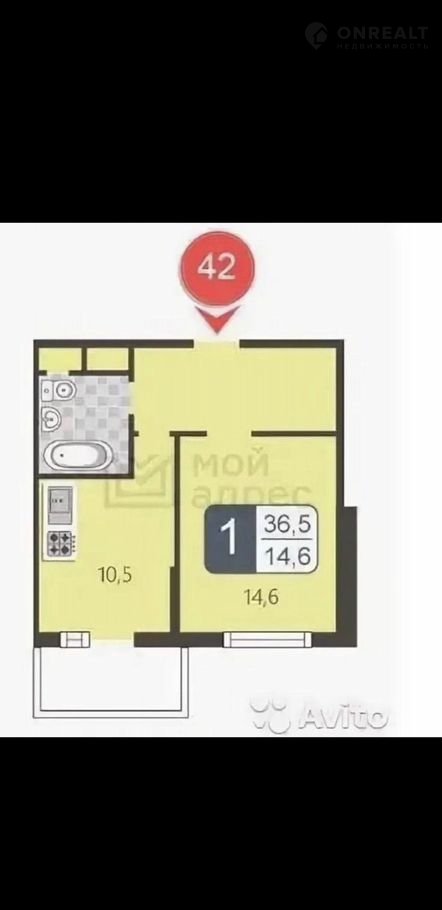 Общая площадь 36.7 м2