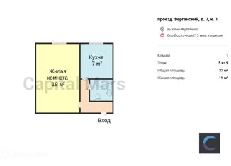 Аренда однокомнатной квартиры, 34.5 м2, Ферганский проезд, 7к4