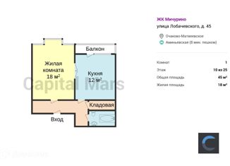 Аренда однокомнатной квартиры, 45 м2, улица Лобачевского, 45