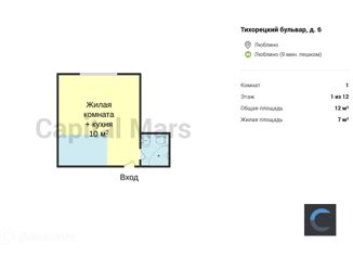 Однокомнатная квартира в аренду, 20 м2, Тихорецкий бульвар, 6