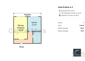 Квартира в аренду студия, 39 м2, Ягодная улица, 6