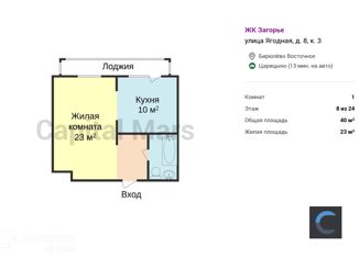 Сдается квартира студия, 38.8 м2, Ягодная улица, 8к2