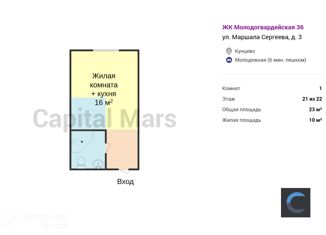 Сдам 1-ком. квартиру, 23 м2, улица Маршала Сергеева, 3
