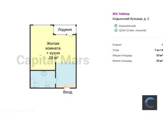 Сдача в аренду 1-ком. квартиры, 29 м2, Ходынский бульвар, 2