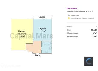 Сдается в аренду 1-ком. квартира, 28 м2, проезд Невельского, 1к2