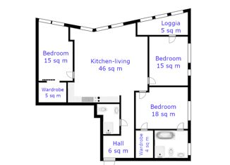 Общая площадь: 70 м2