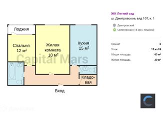 Квартира в аренду студия, 34 м2, Дмитровское шоссе, 107