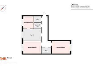3-ком. квартира в аренду, 67.4 м2, Боровское шоссе, 2к2