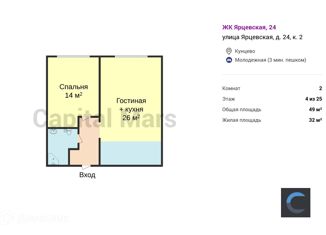 Сдам 2-комнатную квартиру, 34.8 м2, Бобруйская улица, 14к2