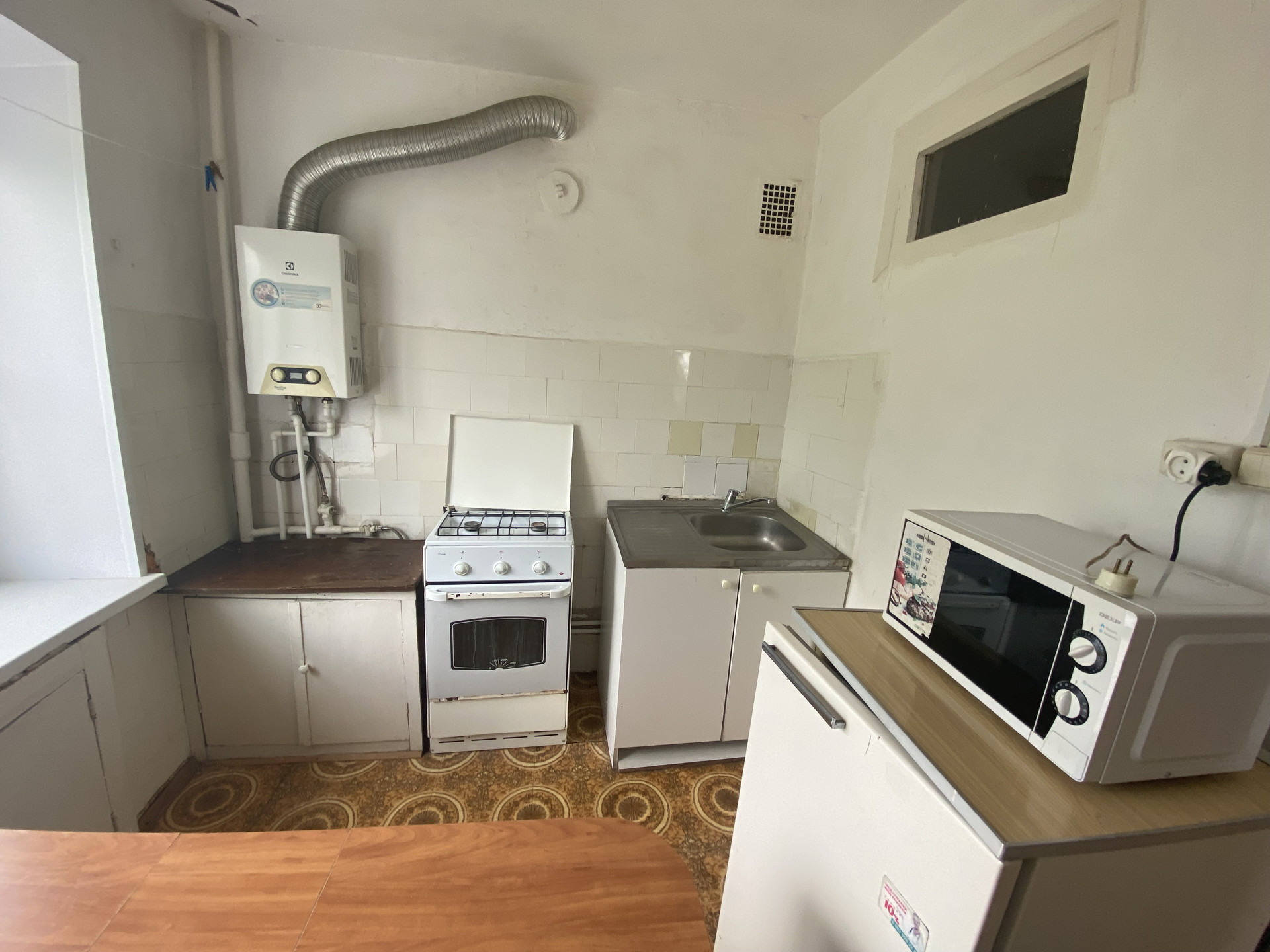 Общая площадь 32 кв.м., кухня 7 кв.м., с встроенным кухонным гарнитуром и техникой, отопление центральное, на кухне стоит газовая колонка ( горячая вода круглый год). Санузел совмещенный, просторная прихожая.