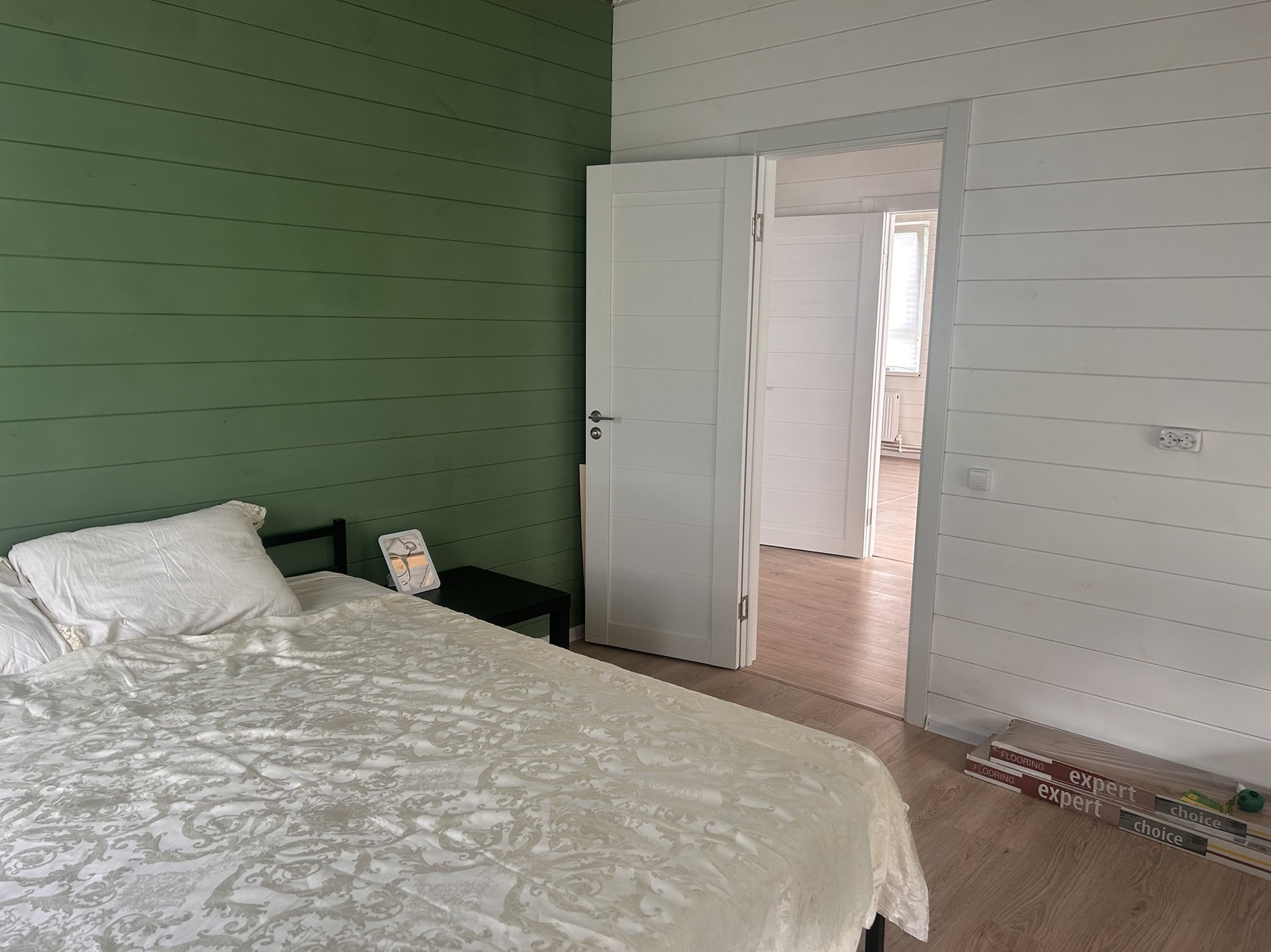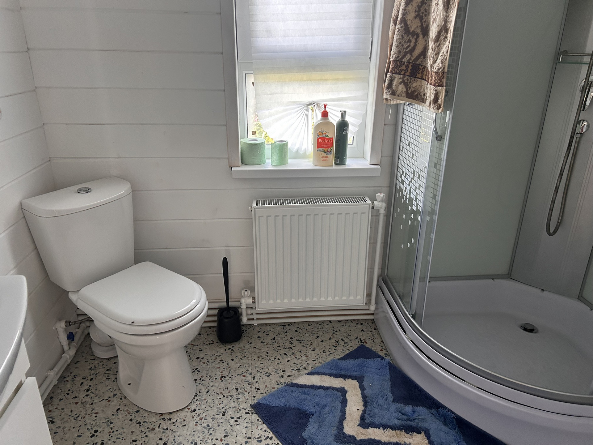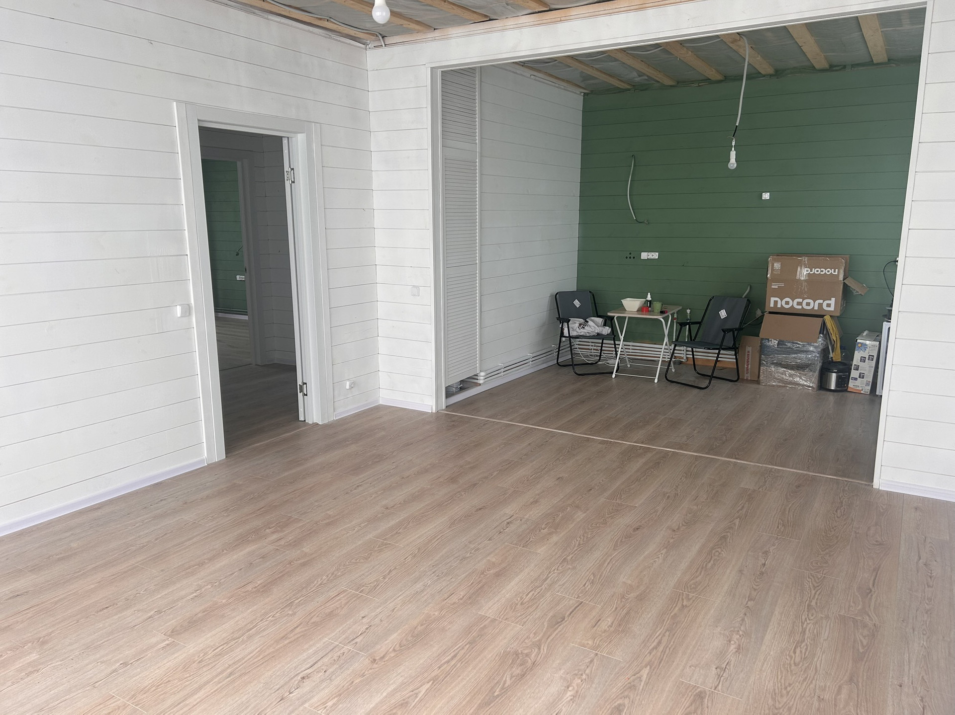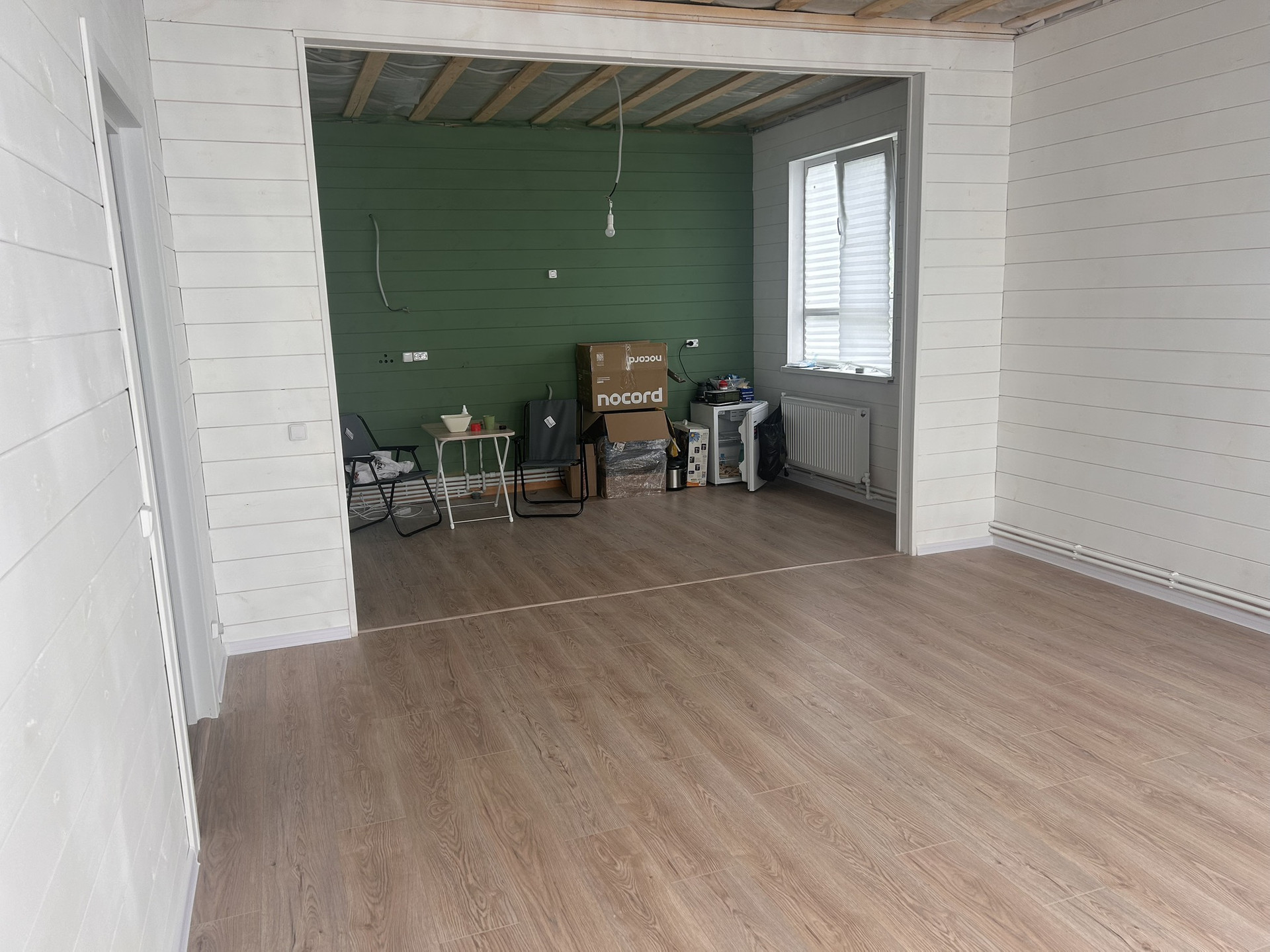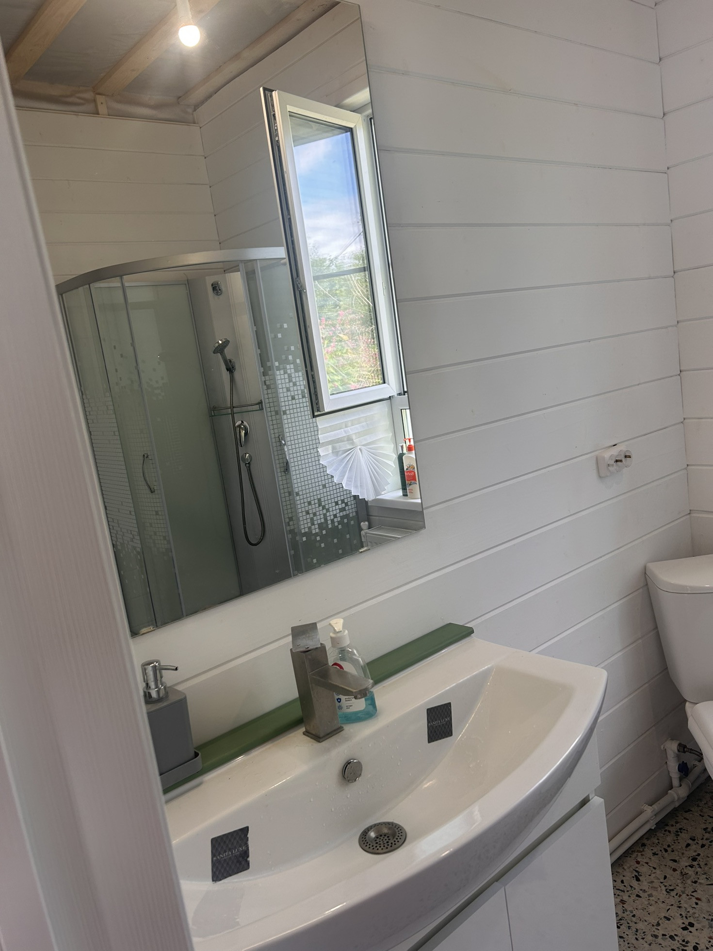 Дом зарегистрирован, как жилой. ПРОПИСКА. Стены покрашены, на полу ламинат, в сан узле гидроизоляция + плитка ПВХ. В мокрых зонах ламинат уложен с герметиками. Установлены двери. В сан узле установлены: новые душ кабина, раковина с тумбой 85 см шириной, унитаз, плоский бойлер с керамическим покрытием на 80 литров.