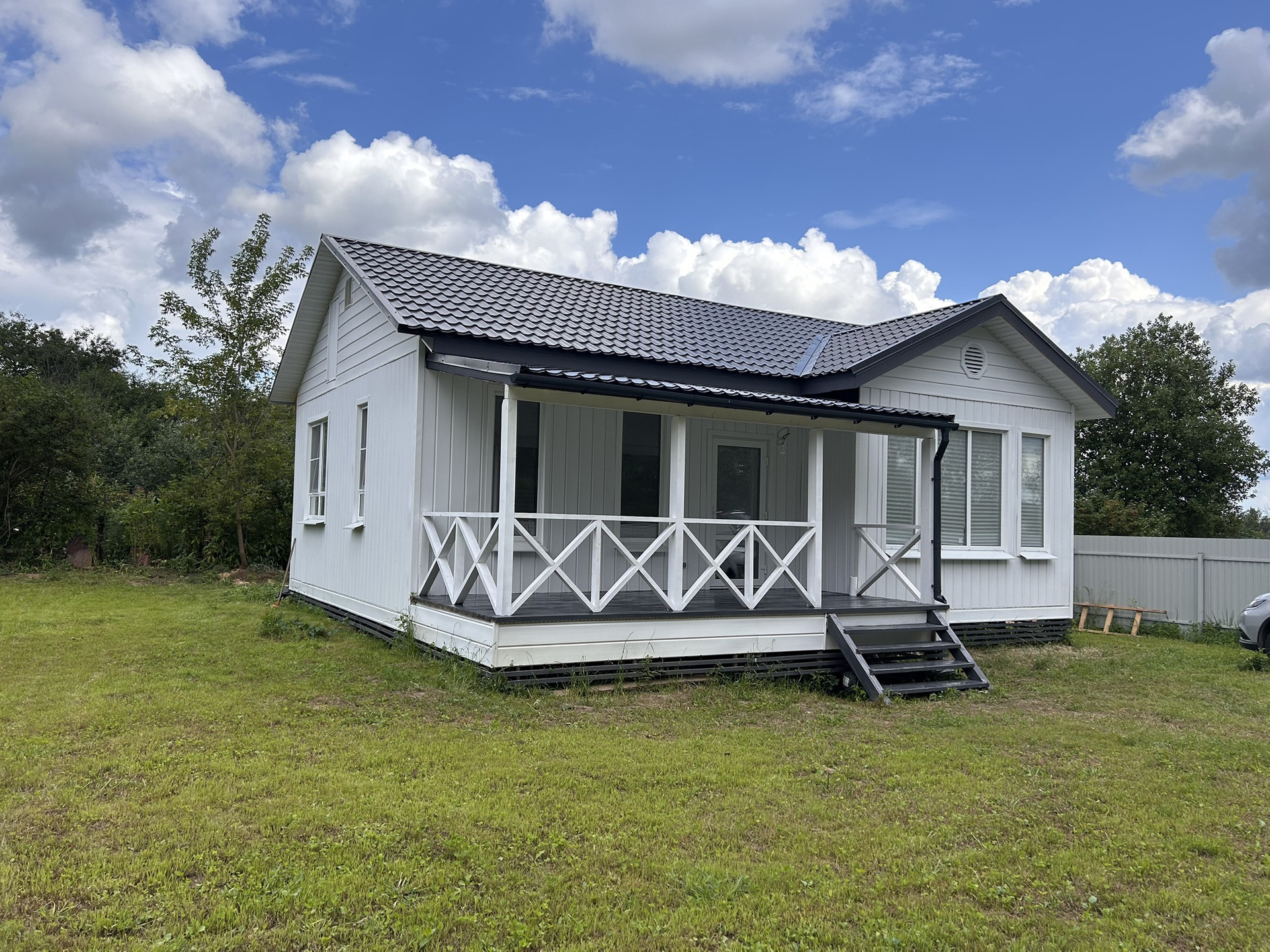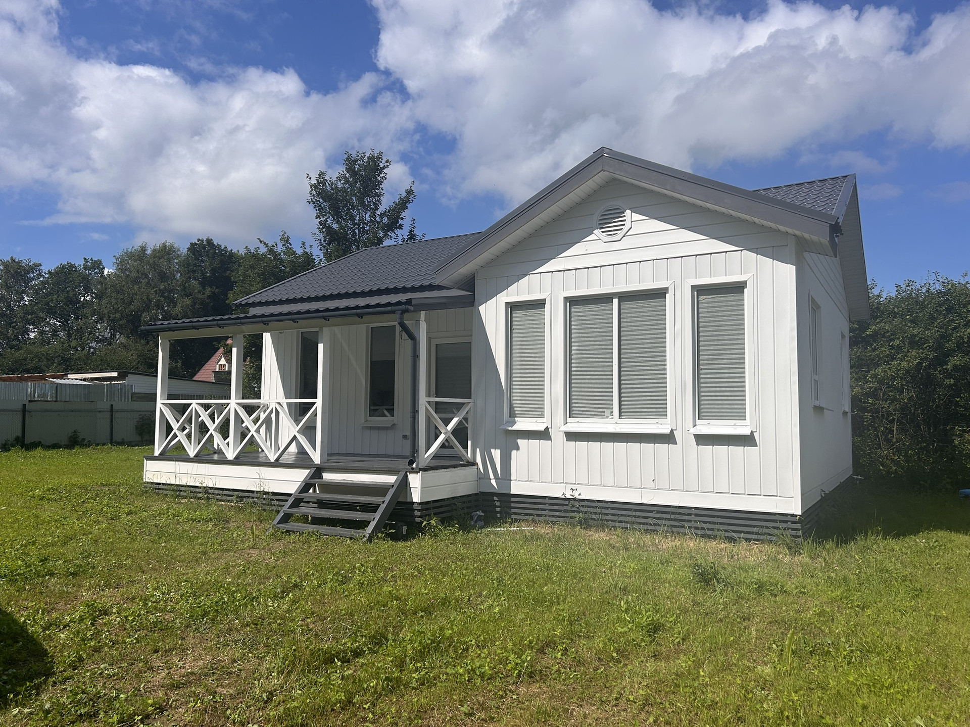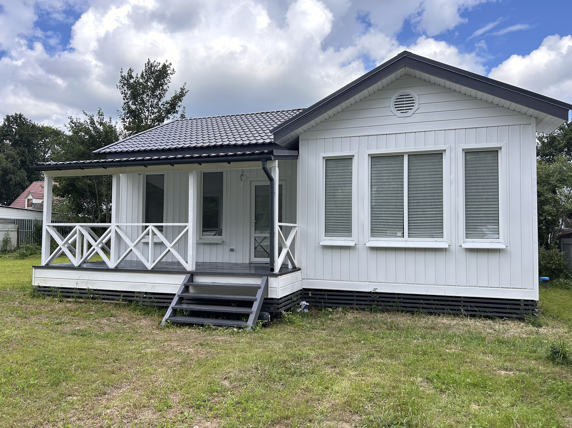 Построен в апреле 2024г. Утепление потолка и пола 200мм, стены 150мм. Из сухого материала. Можно любую экспертизу. Крыша металлочерепица, толщиной 0.5, гарантия 20 лет. Смонтирована водосточная система. Зимние стеклопакеты с москитной сеткой. Окна большие высотой 180 см, панорамные.