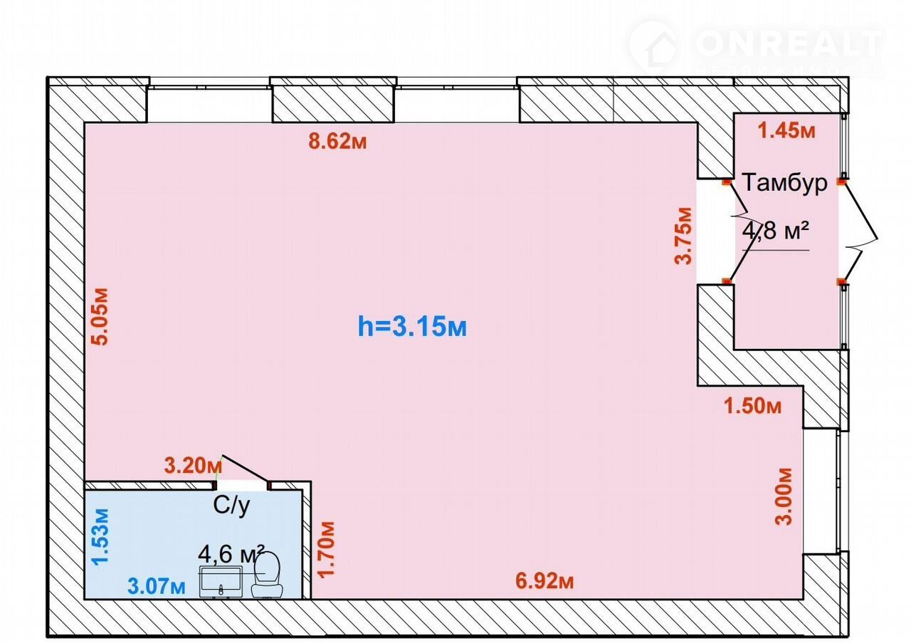 Плoщадь: 67.1 м² – дocтаточно пространства для организации комфортного рабочего процесса.