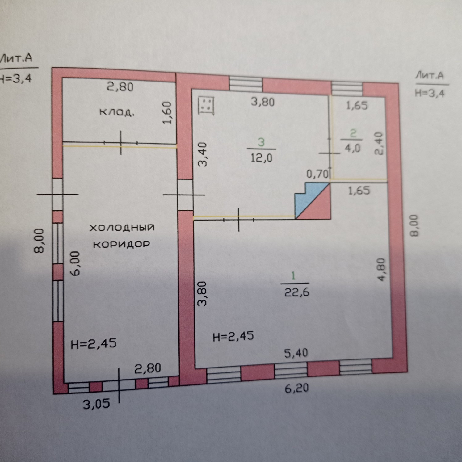 Общая площадь 38.6 м2