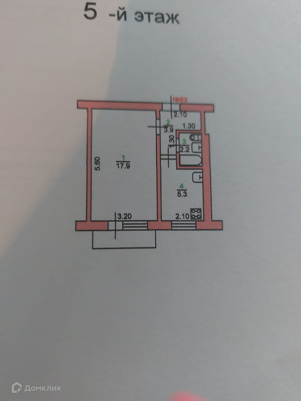 Площадь кухни 5.3 м2