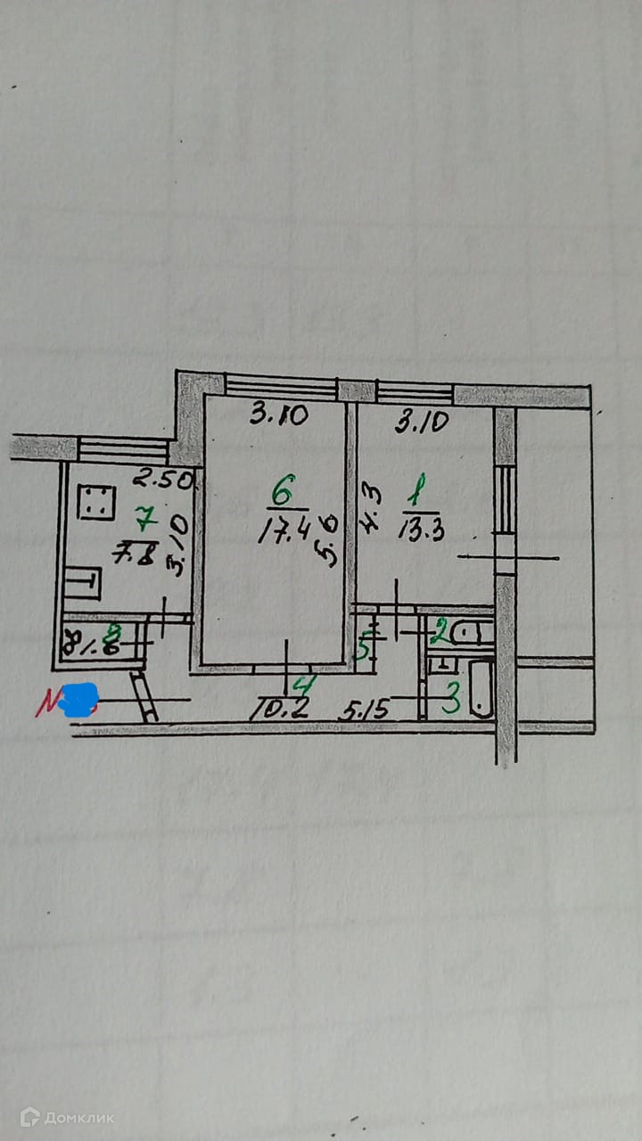 Общая площадь 54.3 м2