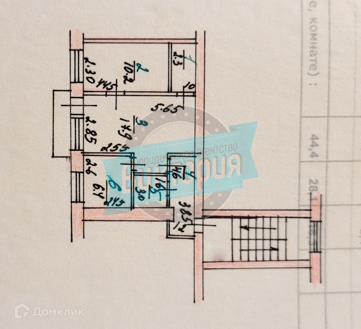 Общая площадь 44.4 м2