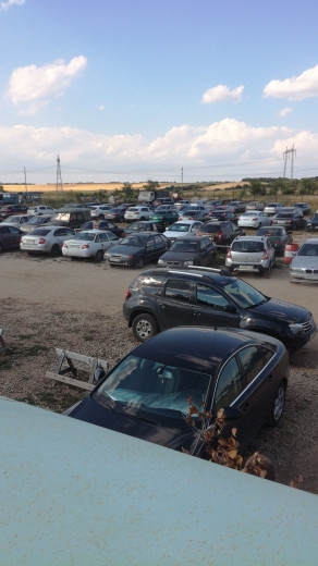 Огромная стоянка рядом.