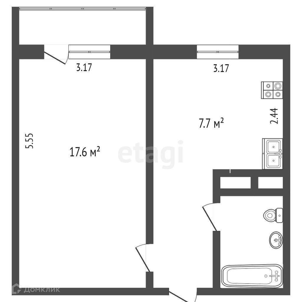 Общая площадь 34.1 м2